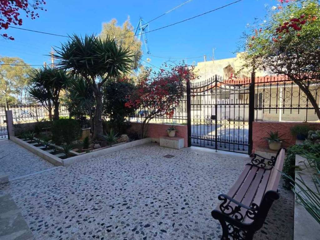 Προκειται για ανεξαρτητο οροφοδιαμερισμα πρωτου οροφου με δικη του σκαλα απο την αυλη και τον κηπο.Κατω απο το διαμερισμα υπαρχει μονο ενα καταστημα.Διαθετει περιμετρικα μπαλκονια και στις 4 πλευρες του σπιτιου τα οποια εχουν τεντες.Στην αυλη του σπιτιου στην οποια υπαρχουν οι θεσεις σταθμευσης εισερχεσθε απο μεγαλη καγκελοπορτα.Ο μεγαλος ηλιακος θερμοσιφωνας τροφοδοτει μονο το διαμερισμα.Δεν υπαρχει θερμανση εκτος απο τα 2 κλιματιστικα που διαθετει.ΟΙΚΟΣΤΕΓΗ ΜΕΣΙΤΙΚΟ
