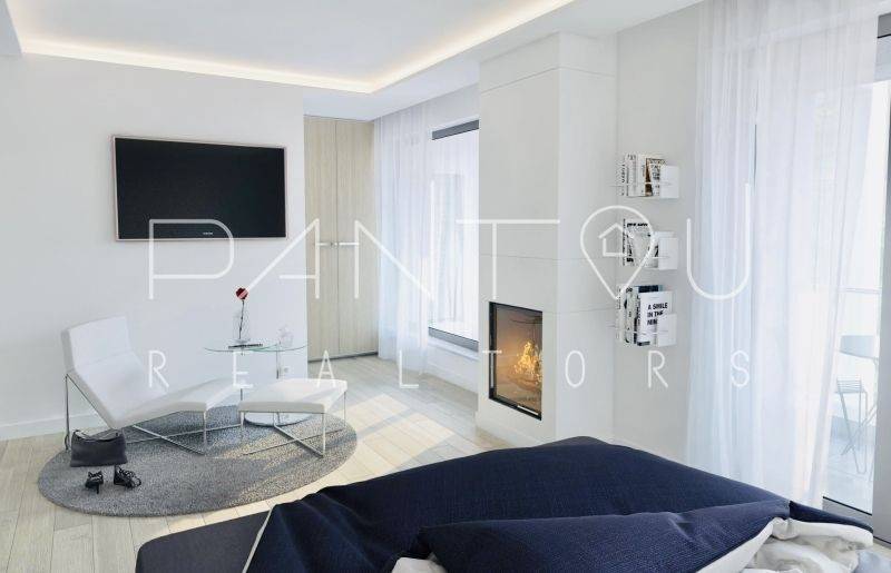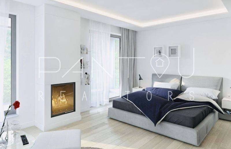Master bedroom ≈20 sqm with en-suite, dressing room, fireplace, and pergola-covered balcony (extendable).