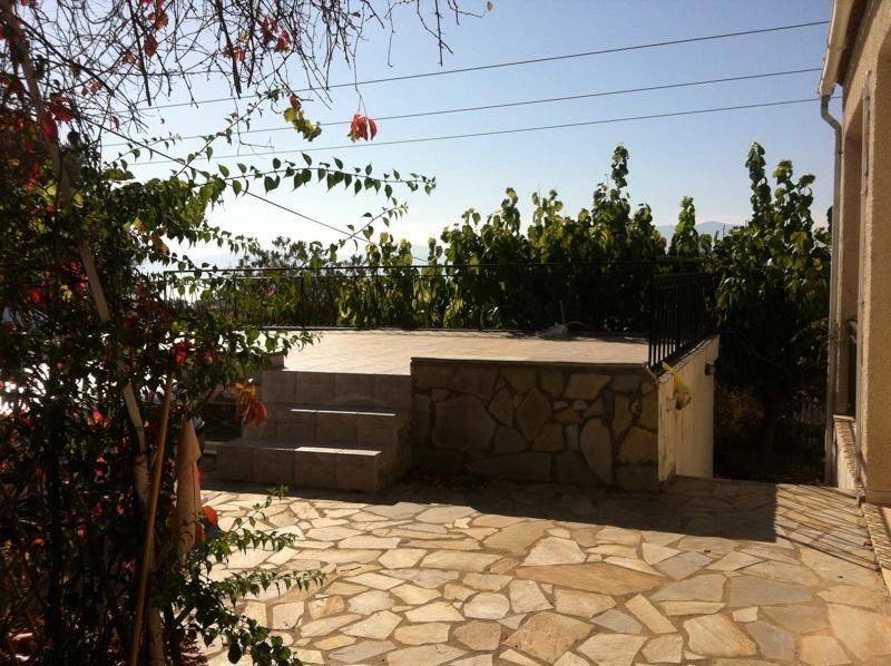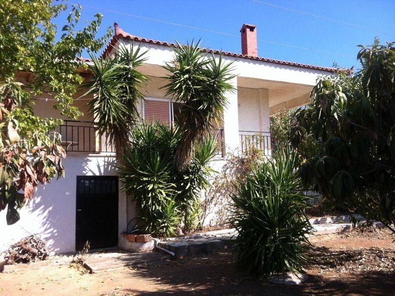 Εύβοια, Ερέτρια, θέση Πλακάκια, Μονοκατοικία Προς Πώληση, 104 τ.μ., με ανεξάρτητη γκαρσονιέρα 30 τμ και αποθήκη ημιυπόγεια 17τμ, σε οικόπεδο: 905 τ.μ. Έτος κατασκευής: 1980, Κατάσταση: Καλή, Φωτεινό. Το σπίτι αποτελείται από κουζίνα ανοιχτή με πάσο, τζάκι, τρία μεγάλα υπνοδωμάτια, δυο τουαλέτες με μπανιέρα, διαθέτει air-condition, περιμετρικές βεράντες με υπέροχη θέα θάλασσα, πάρκινγκ, θωρακισμένη πόρτα, κήπος με δένδρα πάνω και κάτω από την οικία, 10 λεπτά με το αυτοκίνητο από την πόλη της Ερέτριας, πάνω στο βουνό και 5 λεπτά οδήγηση από την θάλασσα. Χρήζει ανακαίνισης. Τιμή 170.000 ευρώ Πωλείται μαζί ή χωριστά Οικόπεδο 490τμ κάτω από την κατοικία 20.000 ευρώ επιπλέον. 104 sq. m. house (built in 1980) situated at a small mountain at the outskirts of the city of Eretria (near Plakakia-Malakonta), 20 minutes’ walk from the sea. The main house includes a living room with a fire place, open kitchen, 3 bedrooms, 2 toilets, big wardrobes, air conditioners and a huge veranda with sea view and parking space. There is a separate house of 30sq.m. situated at the bottom yard (toilet, room, open kitchen) and also, a 17 sq. m. warehouse. Both of the houses are surrounded by gardens (in total 905 sq.m.). It needs renovation. For sale: 170.000 euros. Also, for sale together with the house or separately, two attached pieces of land (in total 490sq.m), 20.000 Euros.