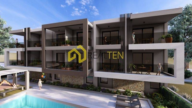 Property Code: 1-600 - Maisonette FOR SALE in Kassandra Kallithea for € 152.000 . This 56.00 sq. m. Maisonette consists of 2 levels and features 1 Bedroom, Livingroom, Kitchen, 2 bathrooms . The property also boasts tiled floor, Window frames: Synthetic, Armourplated door, garden, swimming pool, pre-installation for A/C, pre-installation for alarm system, insect screens, double-glazed windows, entry stairs, ceramic roof, open space. The building was constructed in 2026 . Building Energy Rating: A+