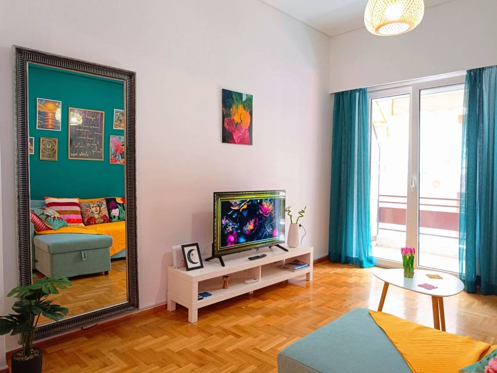 Quiet and bright 1st floor apartment. Renovated and fully furnished (all electrical appliances included). Just 7 minutes walk from the Syngrou Fix metro station and 13 minutes to the Acropolis/Plaka. Close to all transportation, supermarkets, restaurants etc.