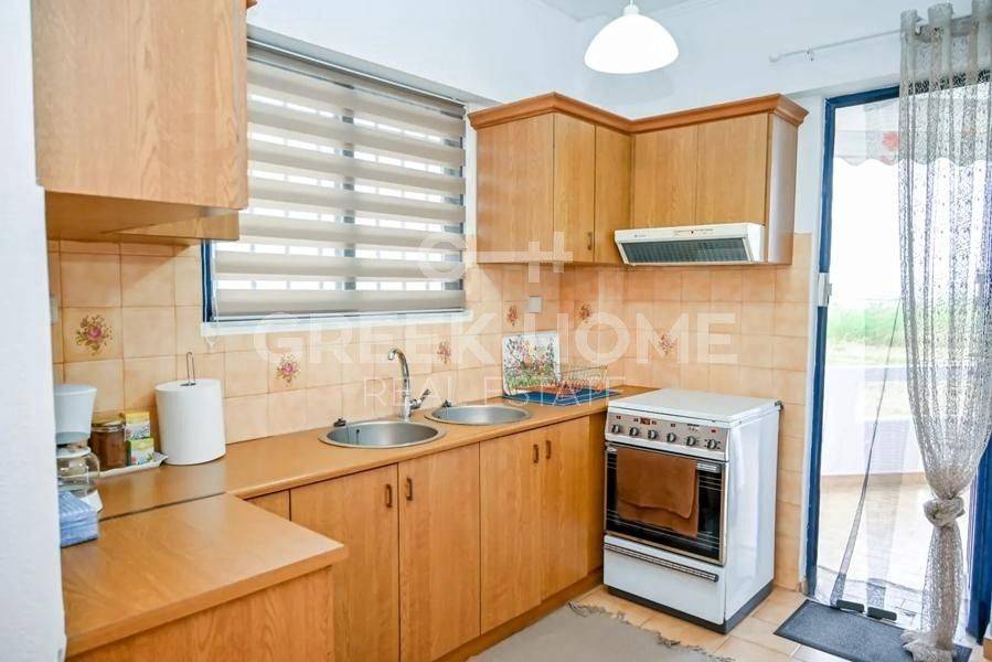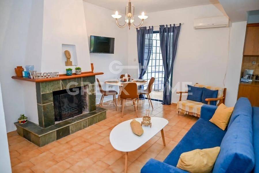 Assos - Lecheo, Kato Assos - Apartment 55sqm plot 400sqm, fully furnished, bedroom, 1st, excellent condition, year built 1990, energy class D, living room, kitchen, bathroom, heating type: autonomous (electricity), air condition, parking open space, quiet, dual aspect apartment, luminous, sea view, frontage, fireplace, balconies, tents, aluminum frames, door screen, ceramic tiles floors, sea front, north-eastern orientation, close to sea (up to 20m).