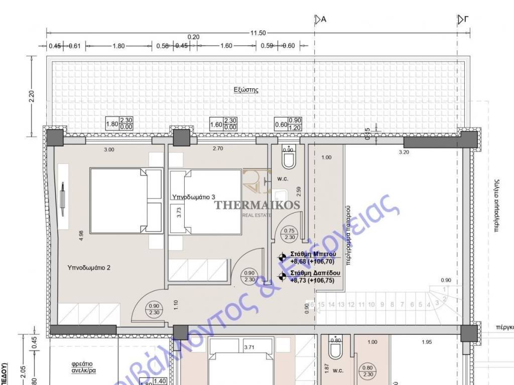 Πωλείται νεόδμητη, μεζονέτα, 132τ.μ.(110 καθαρό) στην περιοχή "Πυλαία - Κέντρο". Πρόκειται για μία πολυτελές, γωνιακό και φωτεινό ακίνητο. Βρίσκεται στον 2ο και 3ο (τελευταίο) όροφο της οικοδομής και διαθέτει ασανσέρ. Αποτελεί μια αξιόλογη επιλογή για οικογένειες. Αυτή τη στιγμή βρίσκεται υπό κατασκευή. Είναι διαρρυθμισμένο σε 2 επίπεδα με εσωτερική σκάλα. Αποτελείται από 3 υπνοδωμάτια με ντουλάπες, σαλοκουζίνα, 1 μπάνιο και 1 WC. Επιπλέον διαθέτει βεράντα, αποθήκη, σοφίτα και θέση στάθμευσης. Στα εσωτερικά του στοιχεία αξίζει να σημειωθούν η θωρακισμένη πόρτα και η δομημένη καλωδίωση. Διαθέτει κουφώματα αλουμινίου με διπλά τζάμια και είναι εξοπλισμένα με σίτες. Τα δάπεδα είναι από ξύλο και πλακάκια. Διαθέτει αυτόνομη θέρμανση με αντλία θερμότητας (ατομική). Επιπρόσθετα υπάρχει ενδοδαπέδια θέρμανση. Η ενεργειακή του κλάση είναι A+. Βρίσκεται κοντά σε στάση λεωφορείου και σχολείο. Με βάση τα χαρακτηριστικά του μπορεί να χαρακτηριστεί ως μια πολύ καλή επενδυτική επιλογή. Τιμή πώλησης: 380000€. Κωδικός ακινήτου: 11035 Για περισσότερα ακίνητα επισκεφθείτε την ιστοσελίδα μας http://www.thermaikosrealest.gr. Thermaikos Real Estate Κλεάνθους 39, Θεσσαλονίκη, Ελλάδα http://www.thermaikosrealest.gr info@thermaikosrealest.gr Τηλέφωνο: 2310900700 Κινητό: 6907218688 ΥΠΕΥΘΥΝΟΣ ΑΚΙΝΗΤΟΥ: ΠΑΠΑΔΟΠΟΥΛΟΣ ΛΑΖΑΡΟΣ Προσοχή! Για την υπόδειξη του ακινήτου είναι απαραίτητη η υπόδειξη της αστυνομικής ταυτότητας και του Α.Φ.Μ. σας σύμφωνα με τον Ν.4072/11-4-2012 ΦΕΚ 86 Α.