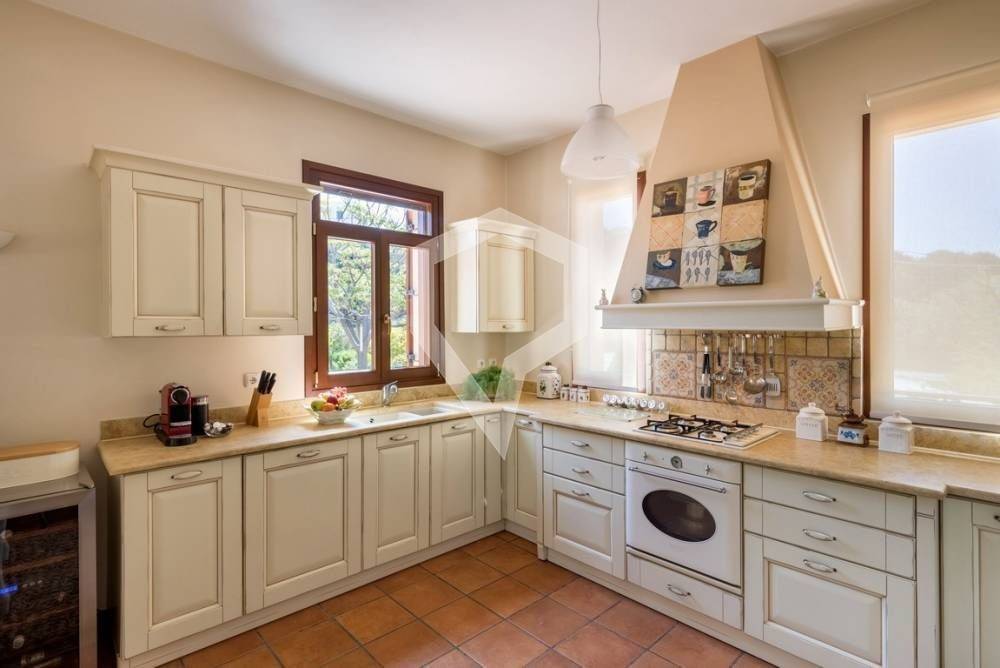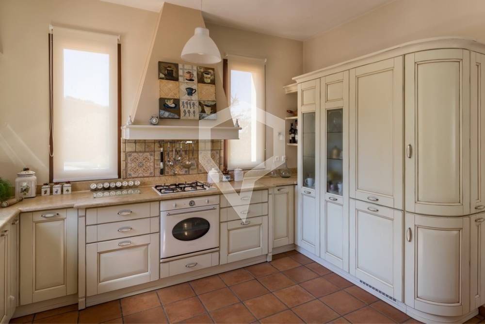 Spacious verandas extend around the property, offering open views of the surrounding settlement and partial sea views. The house was constructed in 2010 using high-quality materials, is excellently maintained, and features wooden window frames with double glazing and insect screens, 4 air-conditioning units, three-phase electricity, and wired internet and TV installations throughout all areas.