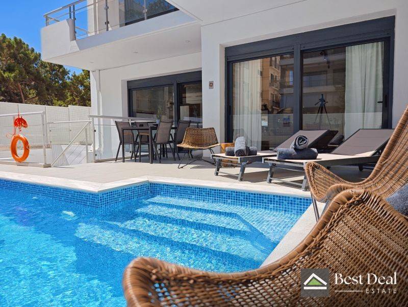 Internal Code: VOU1405000 Fully furnished & Equipped - Maisonette for Rent – Voula Center Price: €5,000 / per month Luxurious fully furnished 140 sq.m. two-level maisonette (Ground Floor & Semi-Basement), ideally located in Voula Center, just a 5-minute walk from the beach. Bright, airy, and through-apartment, designed for premium living. The ground floor features an open-plan living and dining area with a fully equipped kitchen, one bedroom, and a bathroom with shower. The semi-basement includes two bedrooms, a private home cinema with reclining massage Lazy Boy armchairs, and a spacious bathroom with jacuzzi. One bedroom offers direct access to the private pool and veranda. Layout & Equipment: • 3 Bedrooms (3 double beds & 1 single bed) • TV in each bedroom • 2 Bathrooms (shower & jacuzzi) • Fully equipped kitchen • Living room with 55’’ Smart TV & Netflix • Home cinema with massage recliners • Gaming HDMI connection • Washing machine • Air conditioning in all areas Private Pool (❄️ Not available from November 1st to April 30th) Parking: • 1 indoor parking space (Suitable for vehicles up to 4.50m length, 1.85m width, 1.58m height) Property Features: • Area: 140 sq.m. • Levels: Ground Floor & Semi-Basement • Heating: Autonomous electric • Aluminum frames with double glazing • Flooring: Tiles & Wood • Energy class: B+ • Orientation: East–West • Panoramic view ✨ Highlights: • Renovated & luxurious • Private swimming pool • Playroom / Home cinema • Internet • Security door • Quiet neighborhood • Ideal for holiday home or shared living Find more properties and information on our website: www.bestdealestate.com Contact Numbers: +30 210 895 8054 +30 693 715 5747 +30 693 700 2113 Email: info@bestdealestate.com Important Note: The map location is indicative and does not correspond to the exact address of the property. For property viewings, ID and Tax Identification Number are required according to Law 4072/11-4-2012 (FEK 86 A).