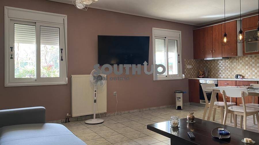 Anavyssos, Mavro Lithari - Floor Apartment 117sqm partially furnished, bedrooms 2, levels 1, ground floor, very good condition, year built 2004, energy class D, living room, kitchen, bathroom, heating type: autonomous (oil), air condition, parking, quiet, dual aspect apartment, unobstructed view view, solar heater, garden, aluminum frames, double glazed windows, ceramic tiles floors, without common charges, three phase electricity, night electricity discount rate, secure door, pets allowed, within city plan, residential zone, northern orientation, access from asphalt.