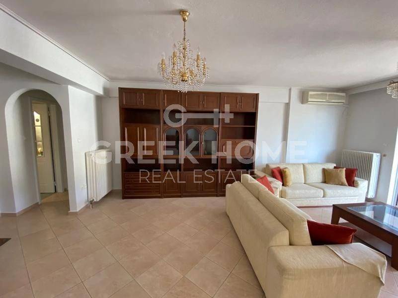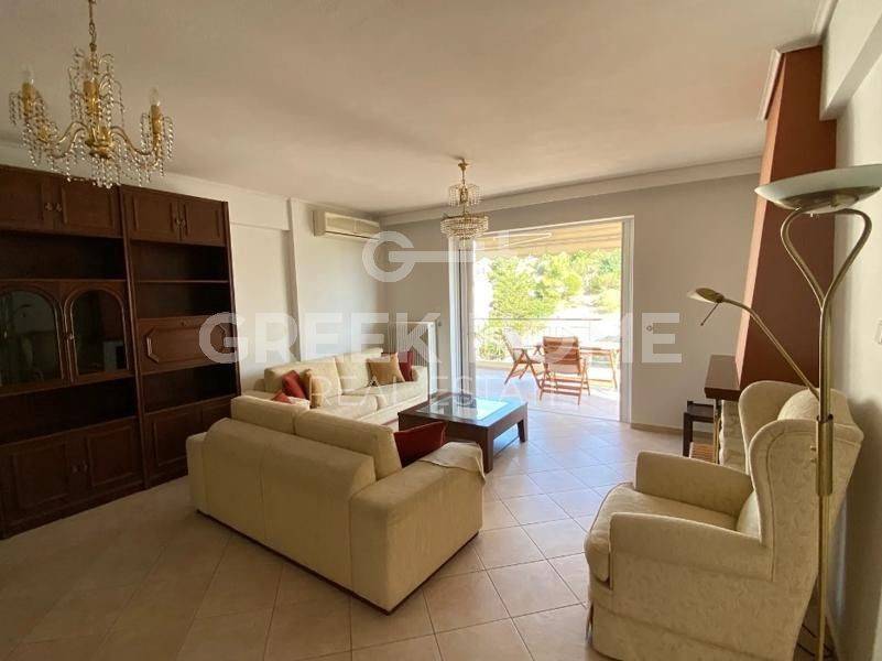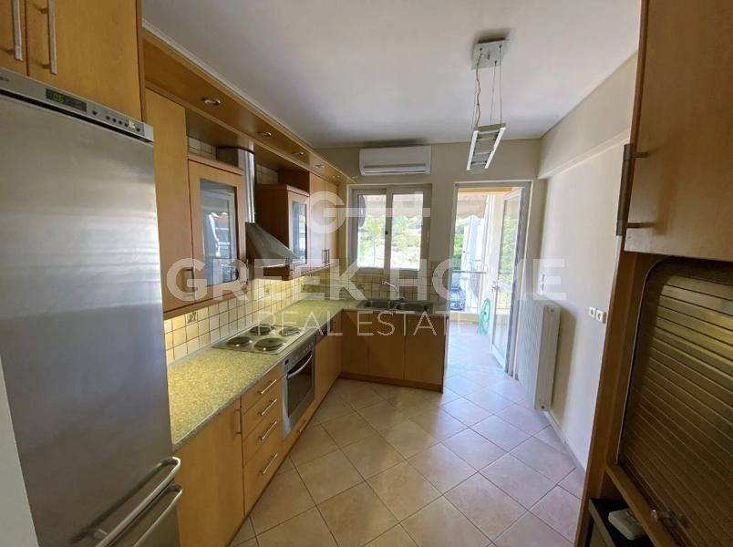 Alimos, Pani - Apartment 109sqm unfurnished, bedrooms 3, 4th, excellent condition, year built 1999, energy class C, living room, hall, kitchen, bathroom, wc, heating type: autonomous (natural gas), air condition, parking ground floor, quiet, dual aspect apartment, luminous, mountain view, frontage, storage space 8sqm, solar heater, fireplace, balconies, large balconies, tents, elevator, thermal shut-off frames, double glazed windows, door screen, wood & tile floors, separate kitchen, night electricity discount rate, secure door, pets allowed, east-southern orientation, close to θάλασσα (up to 0), close to πάρκο (up to 0), close to αγορά (up to 0), close to στάση λεωφορείου/τρόλεϋ (up to 0), close to τραμ (up to 0).