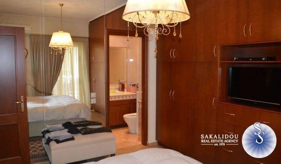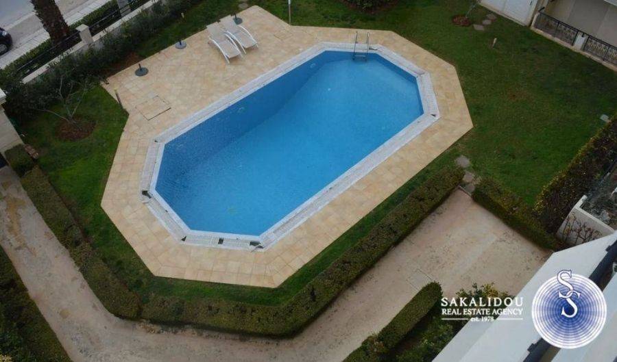 Glyfada Pyrnari 3rd floor apartment with a total area of 124 sq.m. It consists of a living room with a fireplace, a fully equipped kitchen, 3 spacious bedrooms and 2 bathrooms. It was built in 2006 and has independent heating - oil, aluminum frames, armored door, built-in wardrobes, elevator, disabled access, underground parking for 2 spaces, alarm, garden, fireplace, swimming pool, 4 A/C, awnings, screens, double glazing, solar water heater, satellite antenna, opening, balconies 50 sq.m. It has a sea view and is located in a wonderful and privileged location near the market and schools.