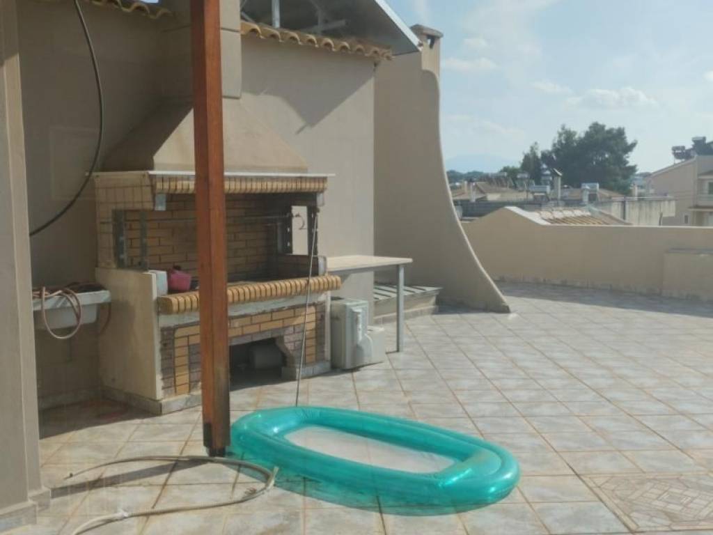 Μεζονέτα 3ου ορόφου με 4 Υ/Δ και 5 μπάνια. Τα τρία υπνοδωμάτια βρίσκονται στον πάνω όροφο με το μάστερ να βρίσκεται στο ισόγειο. Το κάθε Υ/Δ έχει το δικό του μπάνιο και υπάρχει και ένα ακόμα κοινό. Είναι φωτεινό με μεγάλο σαλόνι με τζάκι, ξύλινα πατώματα και μεγάλα μπαλκόνια. Η θέρμανση γίνεται μέσω κλιματιστιών σωμάτων. Η πολυκατοικία διαθέτει και κοινόχρηστη πισίνα. Ιδιόκτητη ταράτσα, τζάκι, ηλιακός.