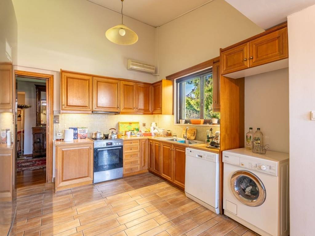 An exceptional residence with a total surface of 423 sq.m., harmoniously combining comfort, functionality, and elegance. The property features a total of six spacious bedrooms and seven bathrooms, offering ideal living conditions for both family use and hospitality. The house is already configured into two fully independent residences, with internal communication via staircase and separate entrances on the ground floor and first floor. The first residence is developed on an elevated ground floor and a semi-basement level. It includes a spacious living room with fireplace and access to a veranda, an independent kitchen, three bedrooms, and two bathrooms. The semi-basement features a large playroom with fireplace, an additional bedroom with an adjacent space suitable for use as an office, a WC, and a storage room. This residence is complemented by a private garden and a closed parking space. The second residence extends over the first and second floors. The first floor offers a spacious living room with fireplace, an independent kitchen, two bedrooms—one of which is a master bedroom with en-suite bathroom—and an additional bathroom. The second floor includes a comfortable sitting area, a master bedroom with en-suite bathroom, and an internal storage room. All levels are connected by an internal staircase, while the residence stands out for its wooden floors, built-in wardrobes, and the warm, luxurious atmosphere throughout. The property is equipped with an elevator and is suitably designed to provide easy access for persons with disabilities. The green surroundings ensure tranquility and privacy, while the alarm system and central oil heating combined with solar energy guarantee a high level of security and energy efficiency. This is a unique, high-specification residence where elegance meets comfort, making it an ideal choice for those seeking a truly distinctive property. Discover an unparalleled lifestyle in Leontario, one of the most sought-after areas in Attica. This exceptional location offers a gateway to the rich history, enchanting culture, and sophisticated lifestyle of Athens, while providing a tranquil haven within a vibrant city. Leontario is ideal for families and professionals seeking a blend of tranquility and access to urban amenities. The area boasts excellent infrastructure with easy access to schools, shopping centers, and medical facilities. Public transportation is excellent, with buses connecting the area to the center of Athens in approximately 30 minutes. For nature enthusiasts, Leontario offers nearby excursions to natural parks and hiking trails. Additionally, the area is known for its tranquility and the safety it offers its residents. With proximity to Athens International Airport, just 20 minutes by car, Leontario ensures convenient connectivity to the rest of the world. In Leontario, you will find a place that combines cultural richness, historical charm, and modern elegance. Here, you will experience the best of Athenian life, enjoying the serene allure of one of the most exquisite neighborhoods in Attica.