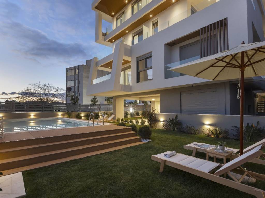 Luxurious newly built (2024) maisonette, 4th-5th floor, with storage room, underground parking space, use of swimming pool and garden, in Glyfada. Located in a building of Excellent Architecture and Minimal Aesthetics. High-Specification Project with swimming pool and garden. Close to Market, Schools and Transportation. Numerous large openings flood each level with natural light, creating an airy and welcoming atmosphere in all areas. It has 2 spacious bedrooms, 1 bathroom, 1 WC, open space kitchen and open plan living-dining room, large balconies, with unlimited views.