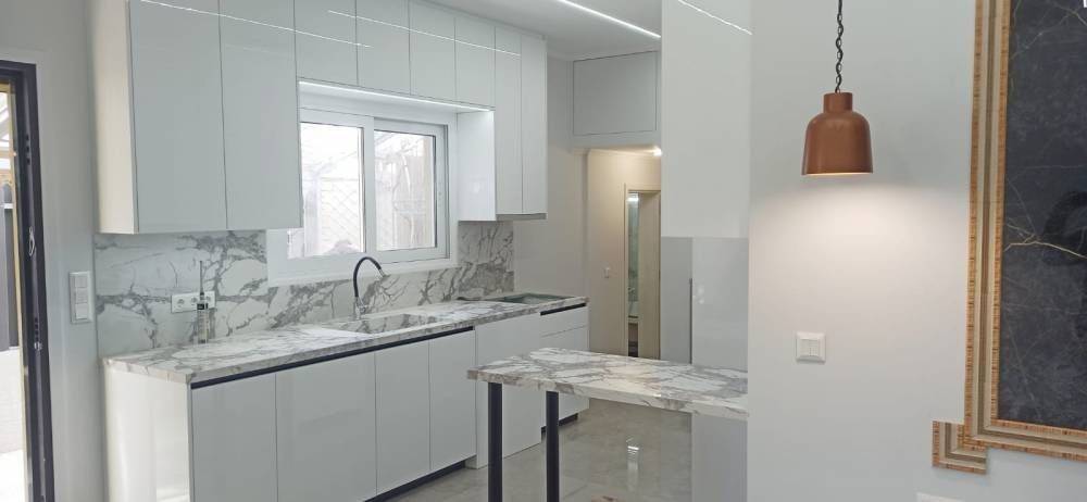 Acharnes, Rethi: Luxuriously renovated bright detached house of 98 sq.m., frontage, with unlimited views, for sale. It consists of 3 bedrooms, 1 living room-kitchen, 1 bathroom with loft, 35 sq.m. yard, 23 sq.m. storage room and 1 outdoor (covered) parking space. It was built in 2003 and completely renovated in 2025, painted, close to public transport, mini market, playground, 8 minutes from the center of Acharnes, 10 minutes from the Attikis Odos exit. It has aluminum frames with double glazing, thermal facade, screens, security door, marble floors, autonomous oil heating, fireplace, dual-energy solar water heater and pre-installation for air conditioners. It is ideal for families or workers with no monthly fees and pets are allowed. REAL ESTATE AGAPIDIS E.E. ATHENS - CORINTHIANS. Price 180,000€ | Property Code: #GPA 26047