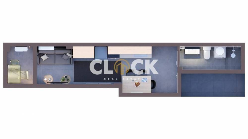 This property features 0 bedrooms, an open kitchen with a living room and a bathroom.
