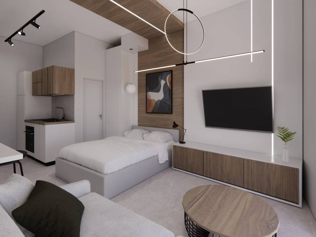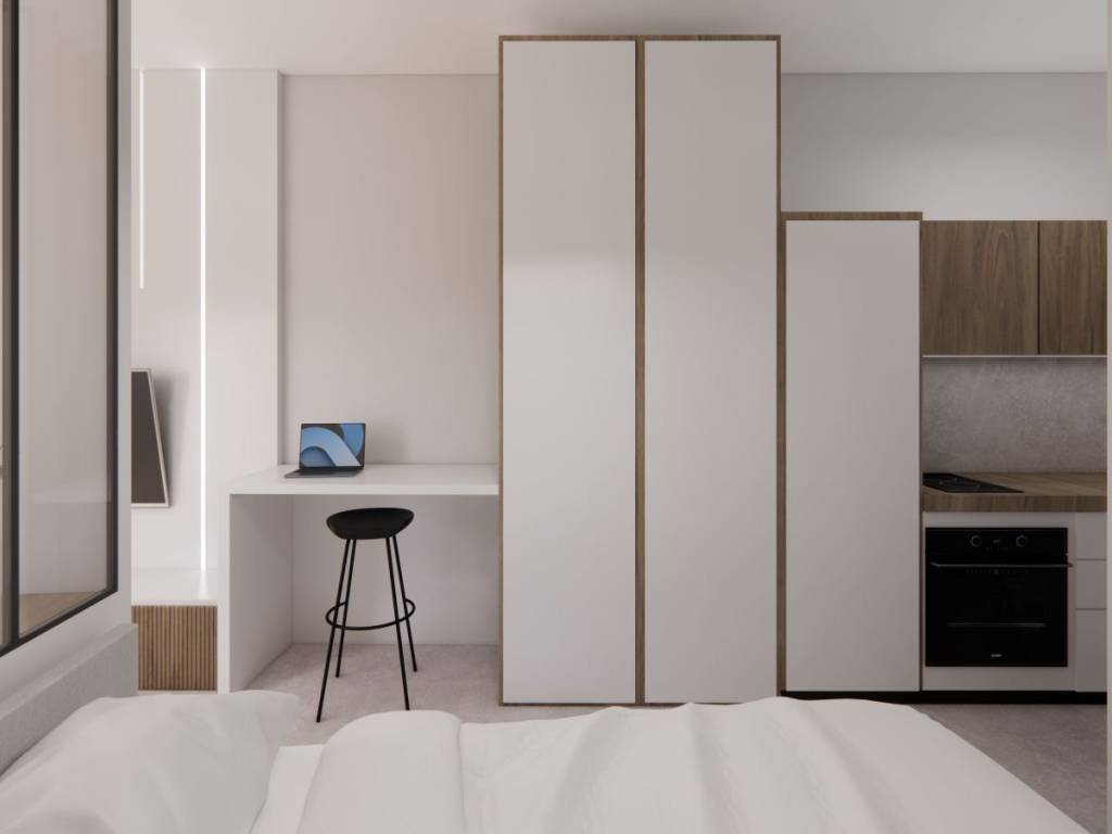 Available are two independent studio apartments, with a total area of 60 sq.m., located on the ground floor, each with its own private entrance. Both studios have been fully renovated in 2026 and are delivered ready to move in, fully furnished and equipped. Each apartment consists of an open-plan living room with kitchen, one bedroom, and a bathroom, designed with a functional and modern layout. The interior design follows the latest trends in contemporary apartment planning, featuring bright spaces, neutral tones, and a strong focus on comfort and practicality.
