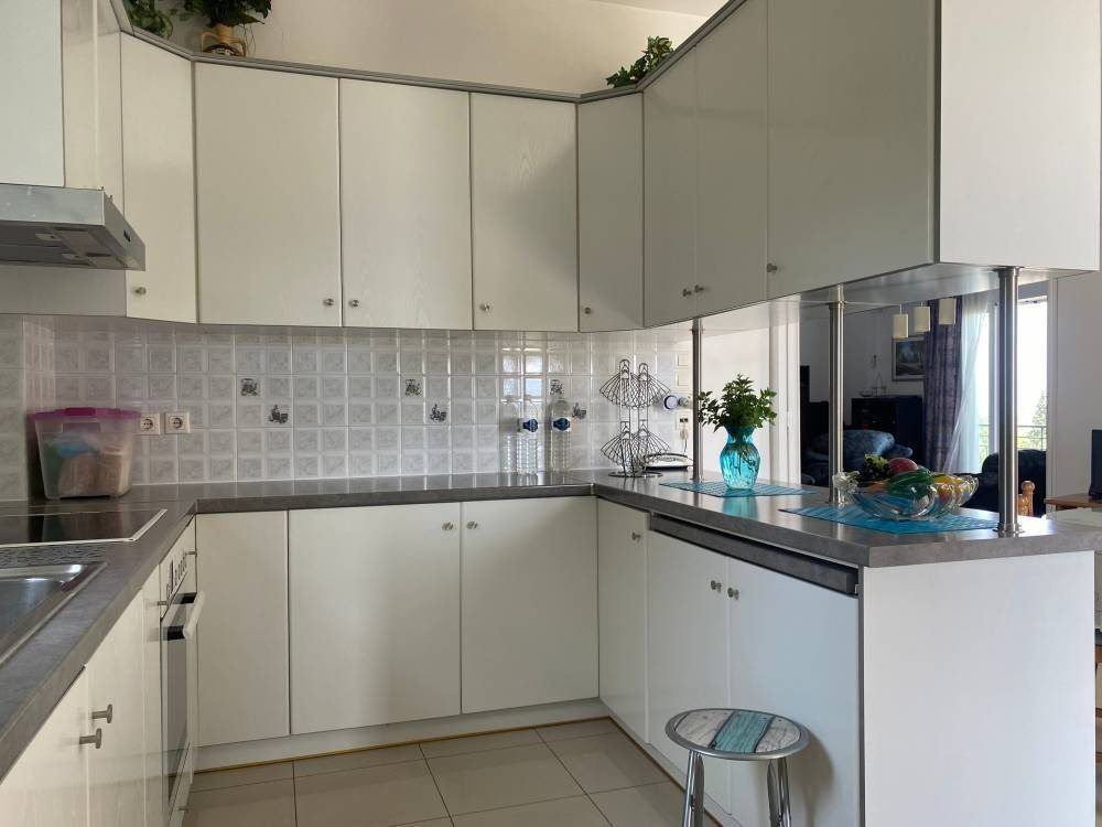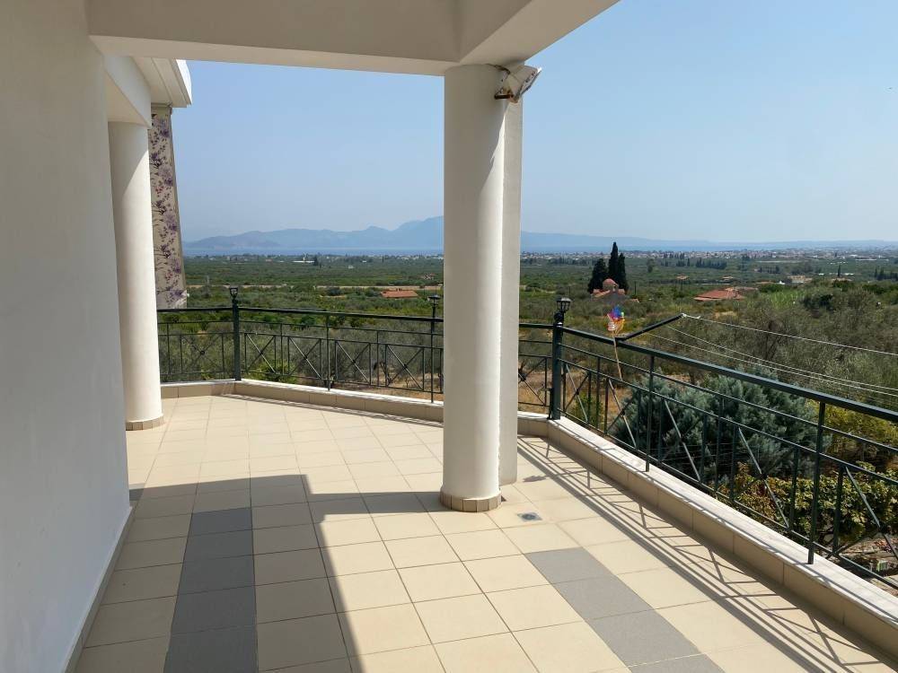 Sikyona, Vasiliko: For sale is a bright two-storey house of 293 sq m. luxury, with individual oil heating. The house is located on a plot of 946 sq m, with a large remaining building area of 89 sq m. It consists of a total of 4 bedrooms, 1 living room-kitchen, 2 bathrooms and a storage room. It is furnished, equipped with electrical appliances, built in 2007. It has aluminum frames with double glazing and screens, security door, 3 parking spaces, air conditioning, tiled floors, awnings, solar water heater, satellite dish and an exceptionally well-kept lush garden with automatic watering. The layout of the floors is as follows. On the 1st floor we find a furnished apartment of 146 sq m, with a fully furnished terrace of 80 sq m with an excellent view of the Corinthian Gulf, on the ground floor there is an unfinished apartment of 85 sq m, with an additional closed garage plus a storage room-boiler room of 62 sq m. It is ideal for families . LIVE HOME REAL ESTATE AGENCY . AGAPIDIS E.E. ATHENS - CORINTHIANS. Price 320,000€ | Property Code: #GPA 16010