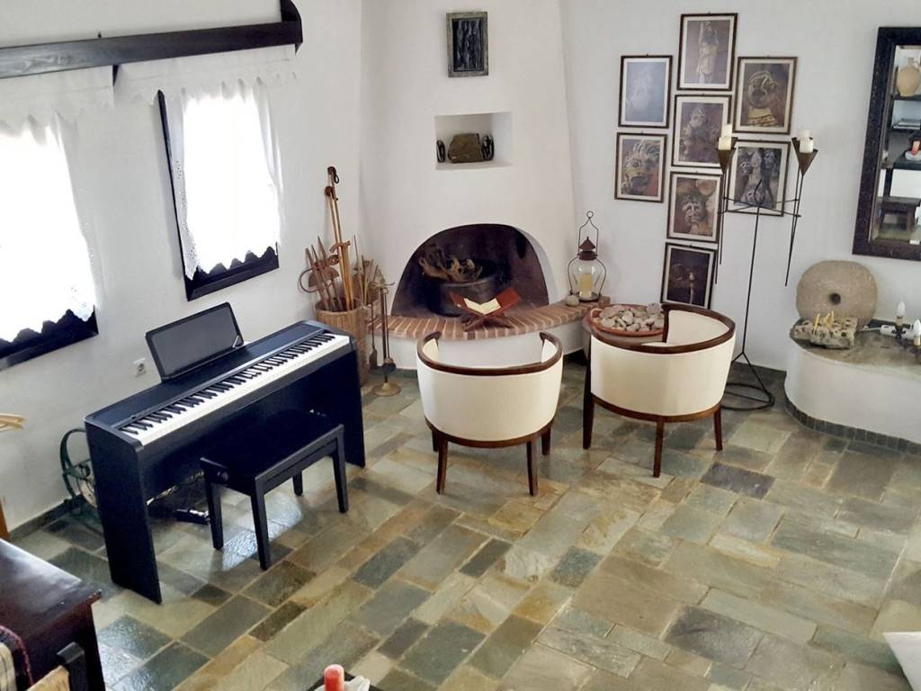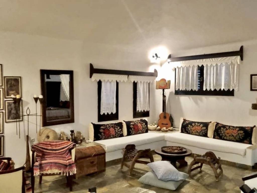 Situated in the serene Delisos area of Evia, just 5 kilometers from Nea Styra, this stunning 290 sq.m. home on a 4,300 sq.m. property offers breathtaking sea views and a tranquil lifestyle. The house spans three levels, featuring a spacious ground floor with a living room and fireplace, two dining areas, a fully equipped kitchen with a pantry, a bathroom, and a laundry room, along with two bedrooms and a large bathroom a few steps up. The attic serves as a private retreat with a super king-sized bed, built-in beds, a cozy living area with a fireplace, and access to a large sea-view terrace. The beautifully landscaped estate is adorned with 100 olive trees and a variety of fruit trees, complemented by outdoor spaces including three covered terraces, a built-in barbecue, a wood oven, and parking for four vehicles. Additional amenities include three auxiliary spaces, a stone-built wine cellar, a 50-cubic-meter rainwater tank, two boreholes, three-phase electricity, autonomous heating, and air conditioning throughout. This property offers the perfect combination of comfort, elegance, and natural beauty, making it an ideal retreat in the heart of Evia.