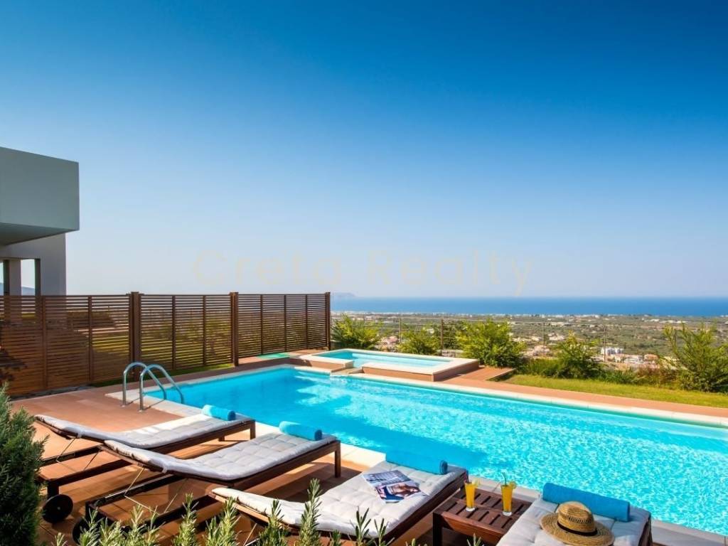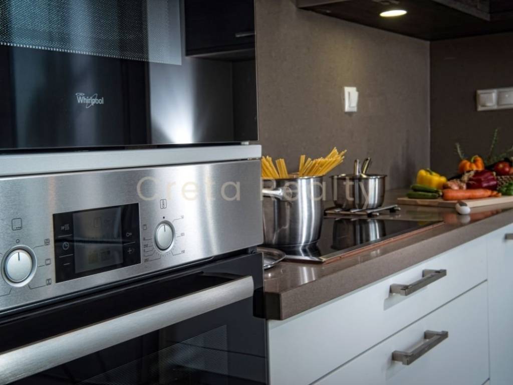 Property Code: 1-396 - Maisonette FOR SALE in Chersonisos Center for € 465.000 . This 132.00 sq. m. Maisonette is on the Ground floor and features 3 Bedrooms, Livingroom, Kitchen, bathroom . The property also boasts Heating system: Individual - Petrol, tiled floor, unobstructed view, Security door, garden, fireplace, swimming pool, electric car charging facilities, A/C, triple energy, alarm system, pre-installation for alarm system, electrical appliances, double-glazed windows, solar-powered water heater, entry stairs, BBQ, attic, satellite dish, internal staircase. The building was constructed in 2010 Plot area: 700 s.q. . Building Energy Rating: B