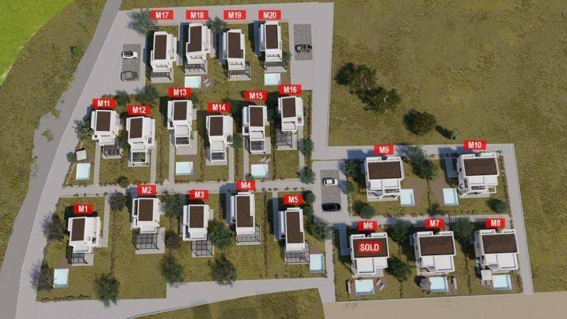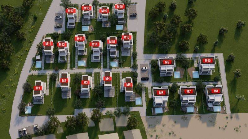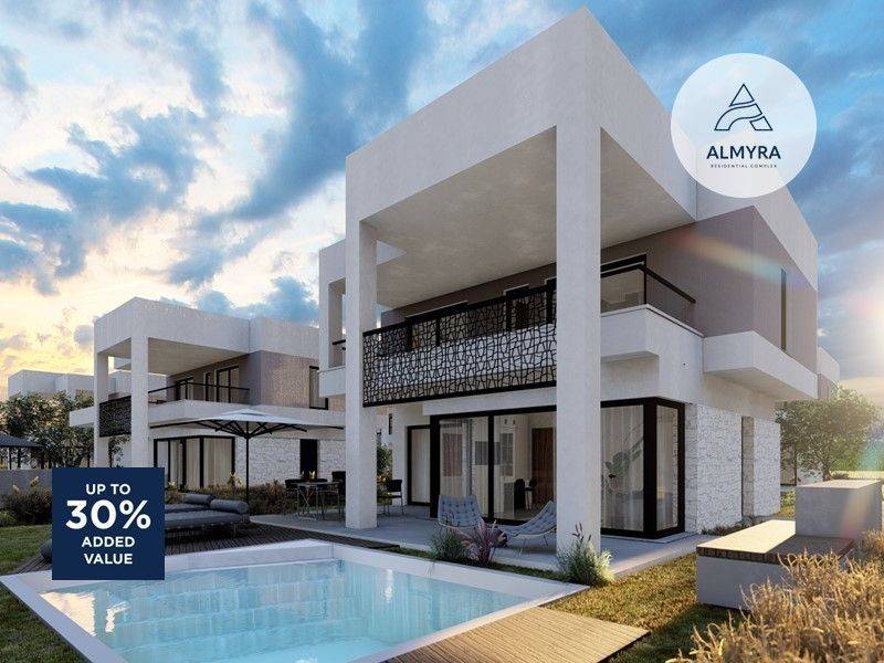 Almyra complex includes 20 modern detached houses, each with a private yard for absolute tranquility and comfort. Some residences have a private pool, while all have been designed with functionality and comfort in mind, offering spacious indoor and outdoor areas.