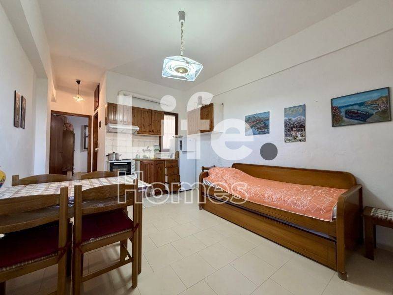 Available for rent: a fully furnished 50 sq.m. apartment located just 10 meters from the sea in Bali, Rethymno. The property is situated in one of the most beautiful coastal areas of Crete and is an ideal choice for those seeking tranquility, comfort, and direct access to the beach. It features a separate bedroom, a living room with an open-plan kitchen, a hall, a bathroom with W/C, and a shared garden with sea views. The apartment is fully furnished and equipped with electrical appliances (except for a washing machine), and includes both a solar and an electric water heater, a new air-conditioning unit, as well as bright and spacious interiors. The monthly rent is 600 euros and includes all utility costs such as electricity, water, internet, and communal fees. There is also the option of a short-term lease of up to 8 months at 800 euros per month, with the same utility costs included. This property is ideal for those looking for a warm and peaceful seaside apartment with direct proximity to the sea and easy access to urban amenities, located in Bali, Rethymno.
