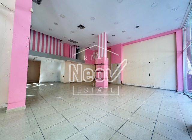Neos Kosmos, Shop For rent, floor: Ground floor. The property is 100 sq.m.. It is close to Metro, Tram, Transportation, Square, Public market, Super Market, Mall, City Center, Cafe/Restaurants, Local market, in Residential. It consists of 100 sq.m. ground floor, 14 sq.m. loft and it has a 14 m. showcase, and it has: 1 spaces, 1 wc, it has Alluminum frames with Double glazed windows, energy certificate: D and its floors are Tiles, Mosaic. The property's status is: Very good condition, it has City views view. The Shop is On Corner, With Facade, Bright. Price: €2.500. Neon Real Estate, contact phone: 2110010550, email: info@neon-realestate.gr