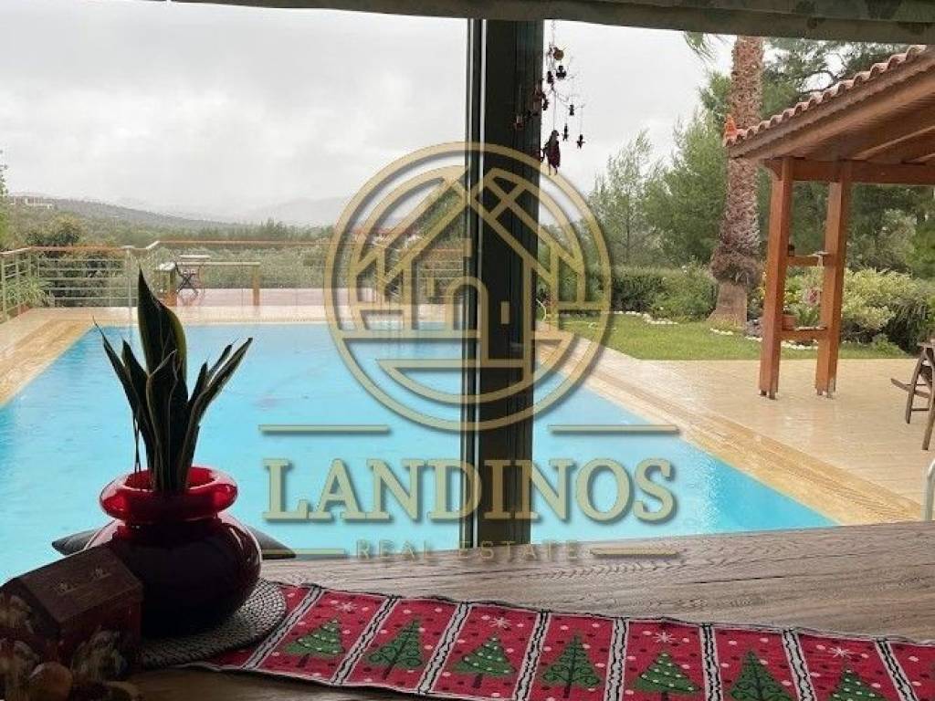 A magnificent residence amidst lush greenery, in the quiet and highly privileged area of ​​Kouvaras, Attica, combining privacy, comfort and a unique contact with nature. The residence is 356 sq m, situated on a plot of 5,450 sq m, and is developed on 3 levels, offering comfortable spaces for a family or for a high-standard country getaway. Consists of: Living room with fireplace Dining room Open plan kitchen Second living room with direct access to a large terrace (can be converted into an additional bedroom) 1 bathroom Storeroom 1st Floor Accommodates: 1 master bedroom with en suite bathroom & dressing room 2 additional bedrooms 1 bathroom Large terrace/veranda with open horizon Lower level Includes: Independent studio with direct access to the garden (single bedroom area – kitchenette and 1 bathroom) 2 covered parking spaces (underground parking) 1 additional storage room Outdoor space The mature garden has been designed with relaxation and hospitality in mind, offering: Multiple seating options Large swimming pool Wood-burning oven BBQ Outdoor dining area space ⭐ Ideal choice for An exceptional residence that offers quality living, ideal for a permanent residence or a high-end holiday home in Kouvaras, Attica. Features Property area: 356 sq m Plot area: 5,450 sq m Levels: 3 Bedrooms: 4 Bathrooms: 3 View: Mountain Swimming pool Fireplace BBQ Underground parking (2 closed spaces) Warehouses G.E.A.: B