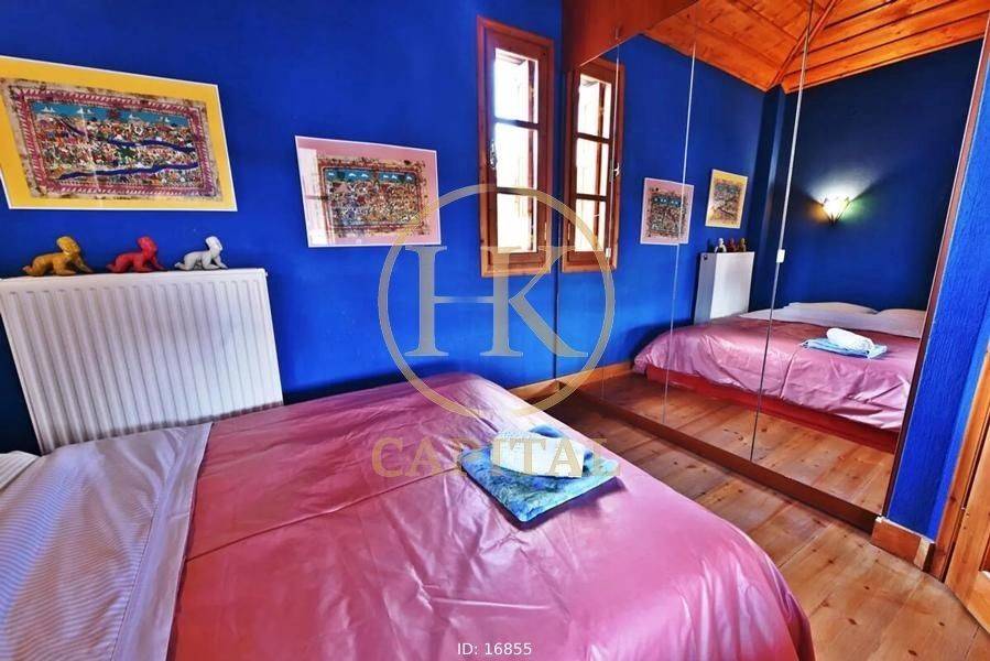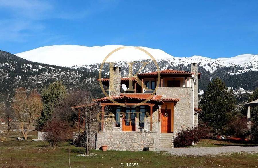Arachova - Detached House 162sqm plot 3000sqm, bedrooms 3, levels 2, ground floor - 1st, very good condition, year built 2005, energy class D, living room, kitchen, 2 bathrooms, wc, heating type: autonomous (oil), parking, quiet, dual aspect apartment, luminous, frontage, fireplace, wooden frames, double glazed windows, ceramic tiles floors, secure door, internal staircase, pets allowed, residential zone, access from dirt road, investment property.