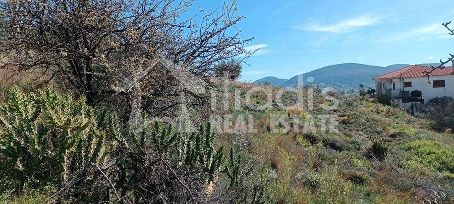Nea Tiryntha, Agios Adrianos - Plot 580sqm floor space index (fsi) 0.6, corner, frontage 57, slope amphitheatric, panoramic view, frontage, within city plan, residential zone, integral, buildable, eastern orientation, access from asphalt, low noise level, investment property. An amphitheater plot of 580 sqm within the settlement of Agios Adrianos in Nafplio is for sale. It is even, buildable with the possibility of building 240 sqm with additional auxiliary spaces and an attic. It has access to two asphalt municipal roads and is airy with large facades. It has a panoramic view of Nafplio, the sea of the Argolic gulf, the green plain that intervenes as well as the houses of the settlement from above. It is only 2km from the Nafplio-Mycenae provincial road, 4km from Nafplio and 6km from Karathona beach. Excellent point for the creation of a holiday or permanent residence as well as a tourist unit.