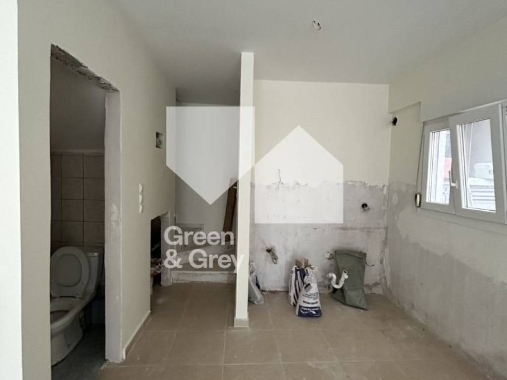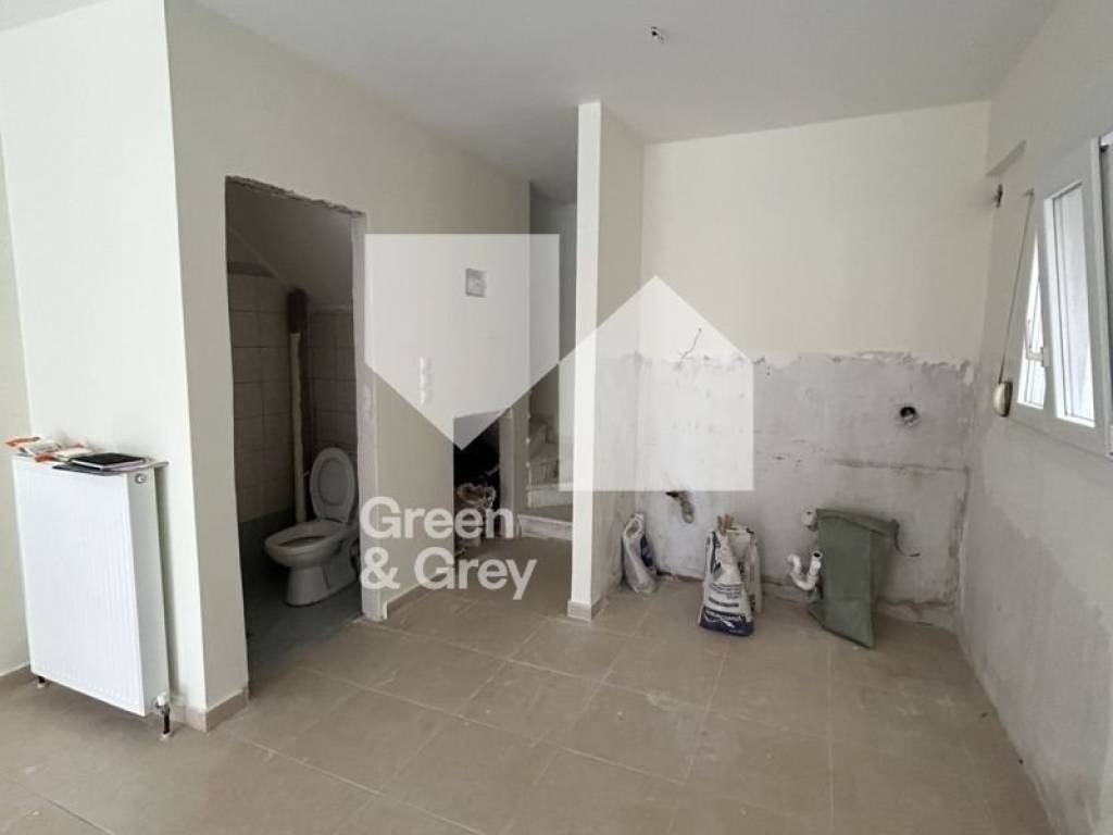 Thermi – Tagarades, ground-floor maisonette with a total surface of 79 sq.m., located in a quiet area with an open view. It consists of a spacious living room with kitchen and a WC, and features autonomous oil heating. The property offers synthetic window frames, tiled floors, a security door, storage room, fireplace, insect screens, double-glazed windows, an internal staircase, and a sense of openness. Natural gas passes through the area with the possibility of connection. An excellent choice for both investment purposes and owner-occupation