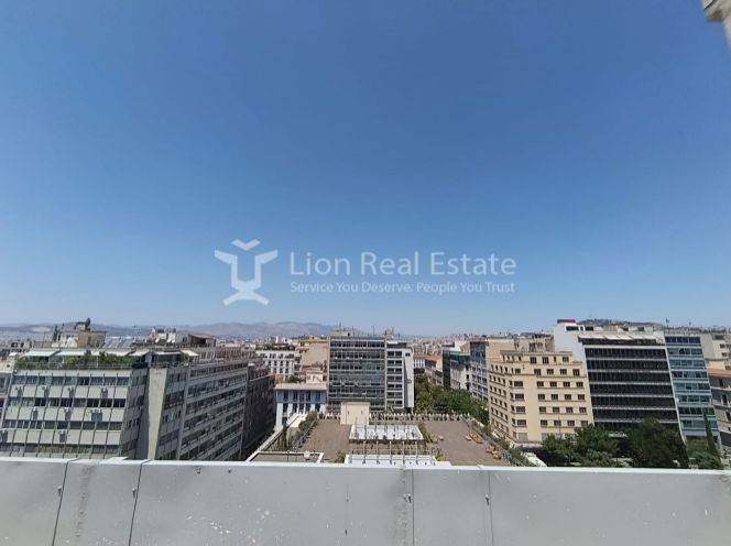 For rent in the heart of Omonia: a spacious office on the 8th floor with a total area of 307 sq.m., spread across two levels. The main level (8th floor) is 292 sq.m. and features large surrounding balconies, while the upper level includes 15 sq.m. with exclusive use of a 150 sq.m. rooftop terrace, which can also be licensed for health-regulated use. The office includes 2 entrances for the 8th floor also 2kitchens and 2 bathrooms, and was built in 1980. It is classified as energy class D and offers unobstructed panoramic views, mosaic flooring, elevator access, double-glazed windows, a pre-installed alarm system, and an open, airy layout.