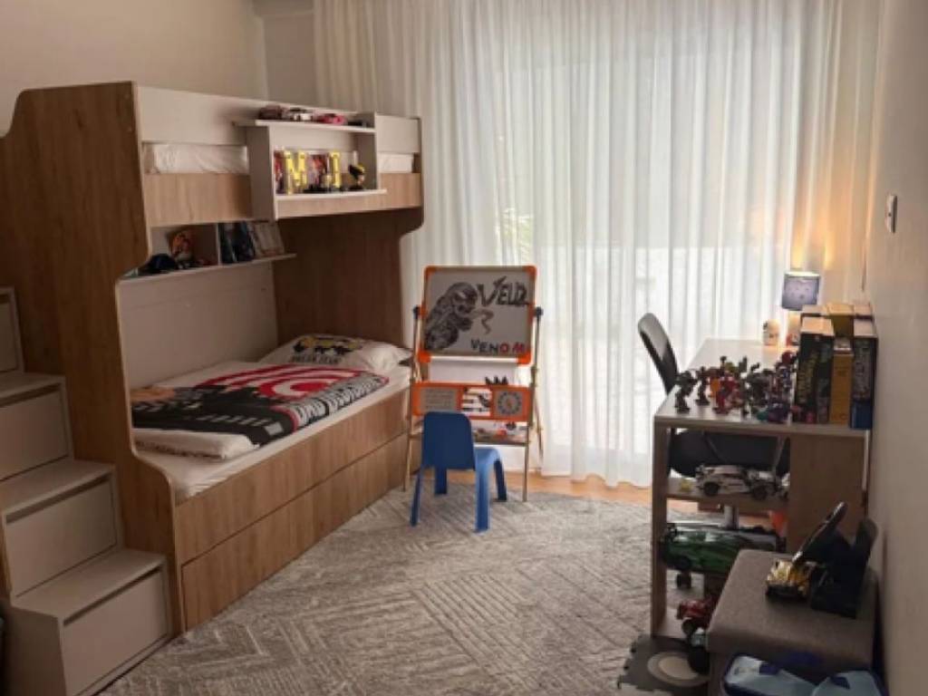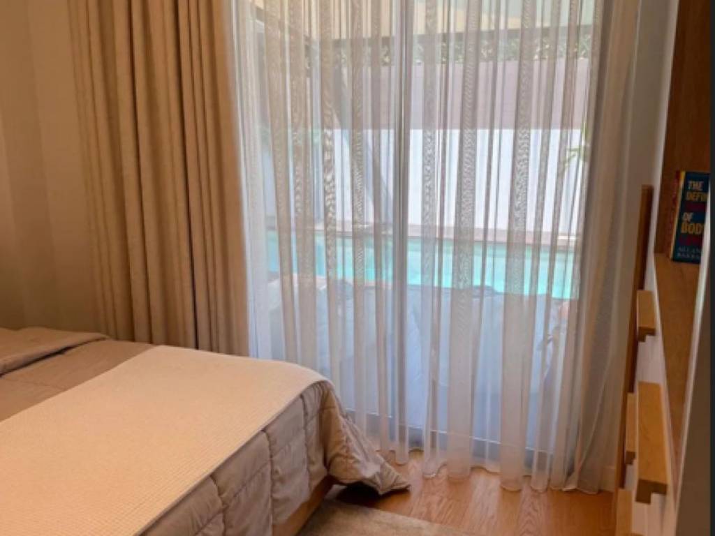Residents can unwind in the lush green garden surrounding the pool, creating a serene oasis. Additional features include an autonomous natural gas heating system, aluminum joinery, a cozy fireplace, secure door, two parking spots, balcony, pest nets, awning, and a state-of-the-art alarm system.
