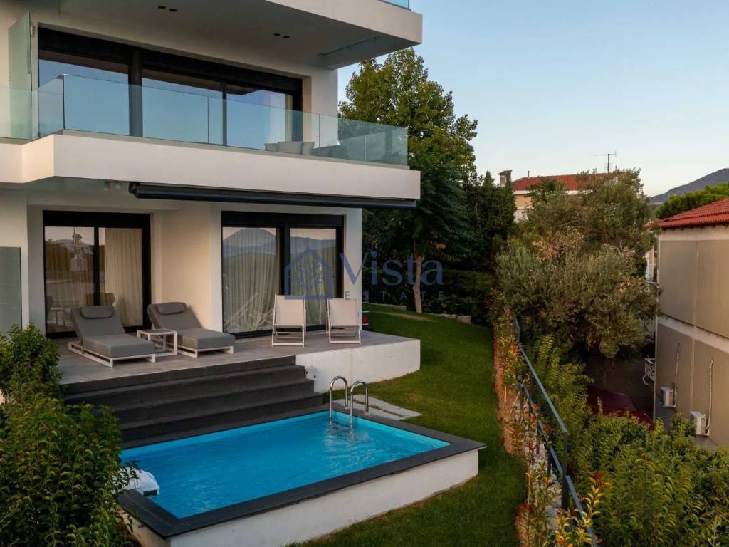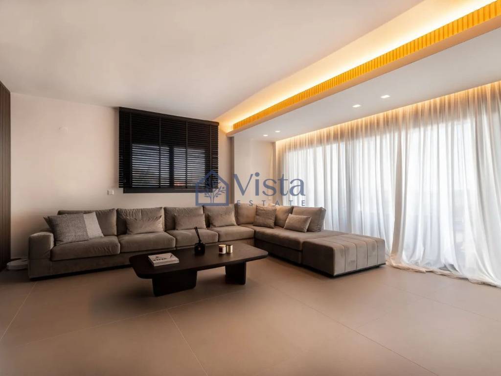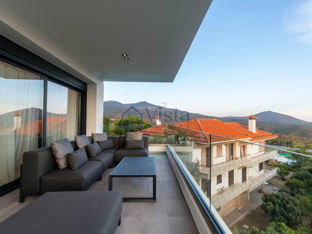 For sale: a stunning, key ready maisonette offering 210 square meters of internal space. This modern home features three spacious bedrooms and two elegant bathrooms, perfect for both families and individuals seeking comfort and style. The property spans the first two floors of a three-story building with a convenient elevator, and it includes a well-designed basement for extra storage or recreational use. Built in 2023, this fully furnished residence boasts top-tier energy efficiency (A+ rating), underfloor heating, and sleek, contemporary finishes throughout. A private, south-facing swimming pool invites you to relax in the sun while enjoying views that stretch from the city skyline to lush countryside and picturesque villages. The maisonette is located in the sought-after Panorama, Center area, known for its tranquil atmosphere, scenic landscapes, and stunning vantage points. Residents benefit from quick access to the highway, bringing all essential amenities, shops, and cafes within easy reach, while still enjoying a peaceful setting with panoramic views. This exceptional maisonette is offered exclusively by Vista Estate. For those seeking a stylish, move-in ready home in a prime location, this property is a must-see.