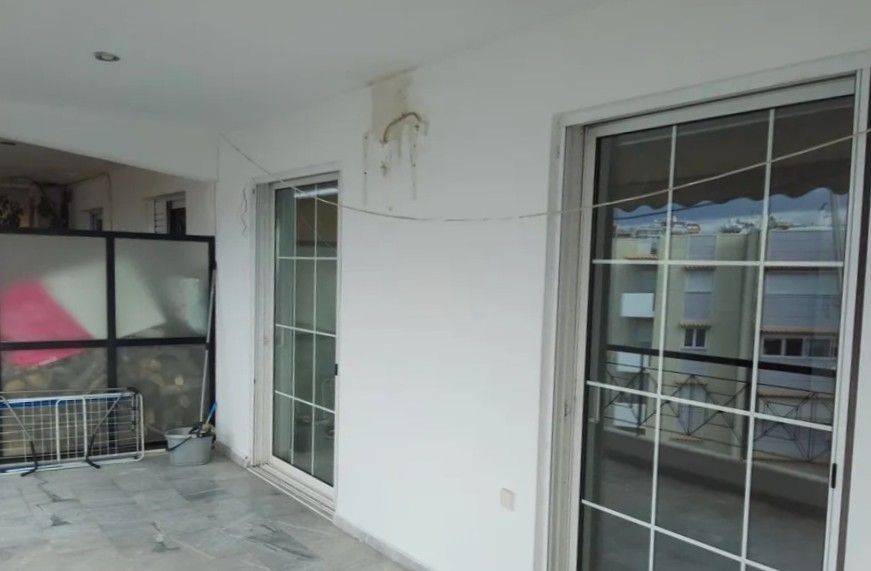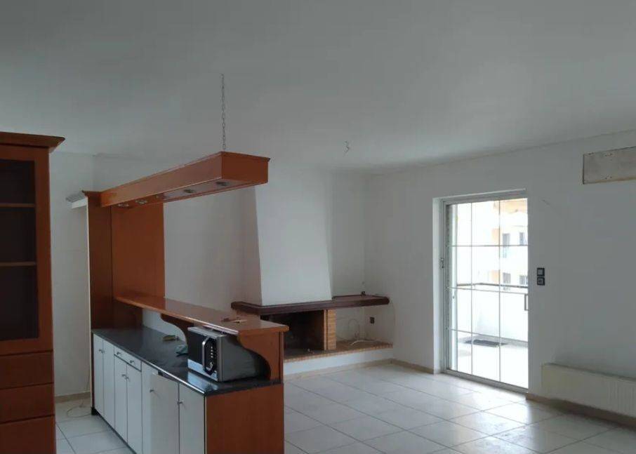 Property Code: 1120 5th-floor penthouse, 100 sq.m., with 20 sq.m. storage room and large corner terraces. It features 3 spacious bedrooms, a living room with open-plan kitchen and fireplace, bathroom and WC. Aluminum window frames, insect screens, air conditioning, awnings, video intercom, autonomous oil heating, and 2 parking spaces in pilotis. Located in an excellent neighborhood close to the local market and schools. Rental price: €1,200 Contact for viewing: Domina Group +30 6975867001