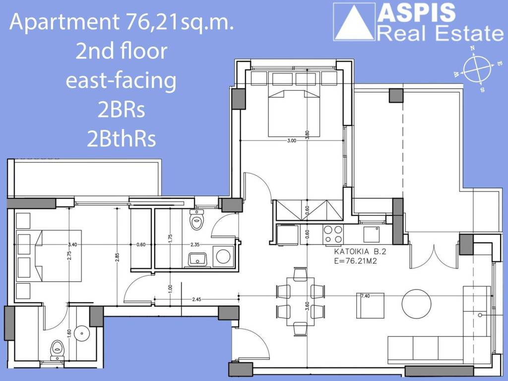 ID: 2113060 – Apartment for Sale | Kalamata For sale: an under-construction second-floor apartment with a total area of 76,21sq.m., located in one of the greenest and most tranquil areas of Kalamata, ideal for families with children or pets. The property consists of 2 bedroom (1master), 2 bathroom, a comfortable kitchen and living room area. It also includes one parking space in the pilotis and a storage room of 22,28 sq.m. Construction is scheduled to begin in early February 2026, with completion planned for early 2028. The area is characterized by low-density development, generous distances between buildings, and abundant greenery with trees, offering a sense of comfort, privacy, and high quality of life. It is a quiet, family-friendly neighborhood, just a 5-minute walk from the city’s central square, perfectly combining peace and quiet with immediate access to the city center. The apartment has an east-facing orientation and is bright, airy, and sunny, offering unobstructed views of the mountain, greenery, and open surroundings. It features one east-facing balcony with a total area of approximately 16sq.m. which serves the living room, while the second (approximately 4 sq.m.) provides a private relaxation space for the bedroom. Features & Amenities: Energy class A+ • Autonomous heating with fan coil units • Photovoltaic system for the building’s common expenses • Aluminum window frames with double glazing • Electric shutters • Insect screens • Tiled flooring • Security door • Video intercom • Elevator • Pre-installation for a security system • Pre-installation for an electric vehicle charging station The property is located in an excellent area, close to public transportation, parks, schools, a kindergarten, the main square, a church, supermarkets, dining areas, and the city center. Ideal for owner-occupation, a holiday home, or investment use, in an area that offers quality of life, safety, and direct contact with nature. Price: €250.000 For more information: Aspis Real Estate Kalamata Phone: +30 27210 80610 Property Manager: Daria Turovska Contact Hours / Greece Time Monday: 09:00–15:00 Tuesday: 09:00–14:00 & 18:00–21:00 Wednesday: 09:00–14:00 Thursday: 09:00–14:00 & 18:00–21:00 Friday: 09:00–14:00 & 18:00–21:00 Email: aspiskalamata@gmail.com Please note: The information has been provided by the property owner. An ID card or passport is required for property viewings (Law 4072/2012). The buyer’s brokerage fee is 2% + 24% VAT.