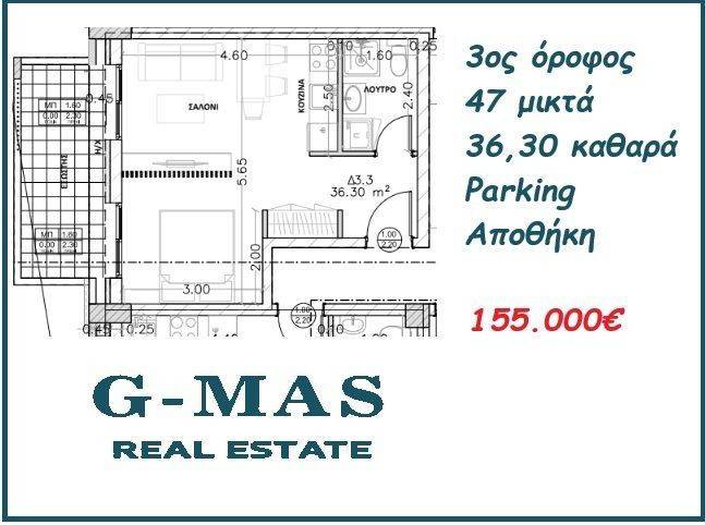 real estate agency g-mas real estate ▶ official member of thessaloniki real estate association 2026 investment proposal ️ code 990 # : ▶ under construction apartment 47 sq.m., in therma, in the center & in the market. ideal point for investment residence! ✓✓ excellent construction with storage. ✓47.00 sq.m. gross & 36.30 sq.m. net. parking space! specifications: energy class a+ underfloor heating with natural gas thermoface 10cm thick energy-effective frames alumil+rehau screens everywhere built-in boilers pre-installation of alarm pre-installation of air conditioning for a viewing of the property and for more investment proposals, call 6932321463 (tzimas stergios) * it is necessary to present a police id or a document with the vat number, according to law 4072/11-4-2012 government gazette 86a. real estate agency g-mas real estate +306932321463 10 salaminos, thessaloniki www.g-mas.gr