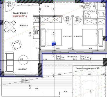 A newly built, front-facing apartment of 67 sq.m. is available for sale in the Thermi area, in eastern Thessaloniki. This is a particularly bright apartment, located on the ground floor of a luxury building. It consists of a spacious living room-kitchen, two bedrooms, one bathroom, and a 10 sq.m. veranda. It also has a private storage room in the basement of the building and a parking space in the courtyard. The apartment has a security door, pre-installation for an alarm system, high energy efficiency synthetic window frames with double glazing, and tiled floors. The property has independent underfloor heating powered by natural gas, and there is pre-installation for air conditioning in all rooms. The property is located in a central area of Thermi, next to shops and public transport stops. It is located next to main roads, with direct access to the center of Thessaloniki and Chalkidiki. You can visit our website: http://www.bluestonerealty.gr to stay up to date with our new properties. *When viewing the property, you must present your ID and tax identification number in accordance with Law 4072/2012. *The exact location on the map does not correspond to the actual location of the property.