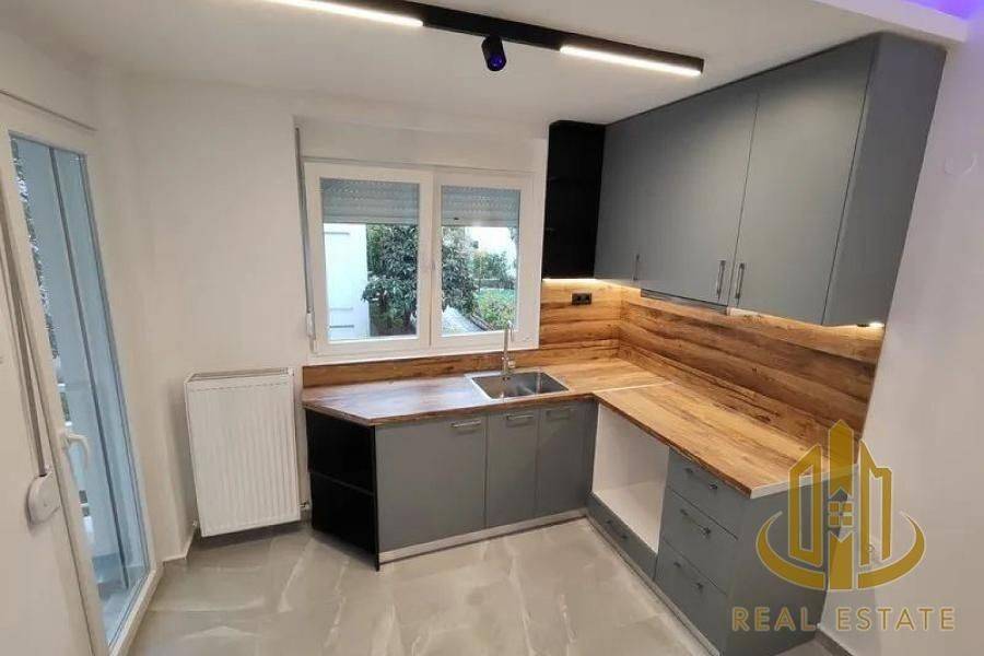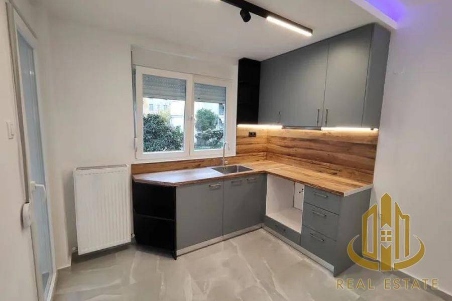Apartment for Sale in Toumpa, 61 sq.m, Built in 1974, Renovated in 2025, 2 Rooms, 1st Floor, Available Now. Features include Air-conditioning, Natural Gas Heating, Road View, Excellent Condition, Luxurious, Granite Tile Flooring, Aluminum Window Frames, Energy Class E, Residential Zoning, North-east Orientation, Level Inclination, Asphalt Access, Bathroom, Living Room Kitchen, Security Door, Veranda. Suitable for Home Ownership, Investment, Students. Pets Allowed. Located within the settlement, with Sewage Network Drains. Close to Underground Station, ΟΑΣΘ Position. Property ID: 214.