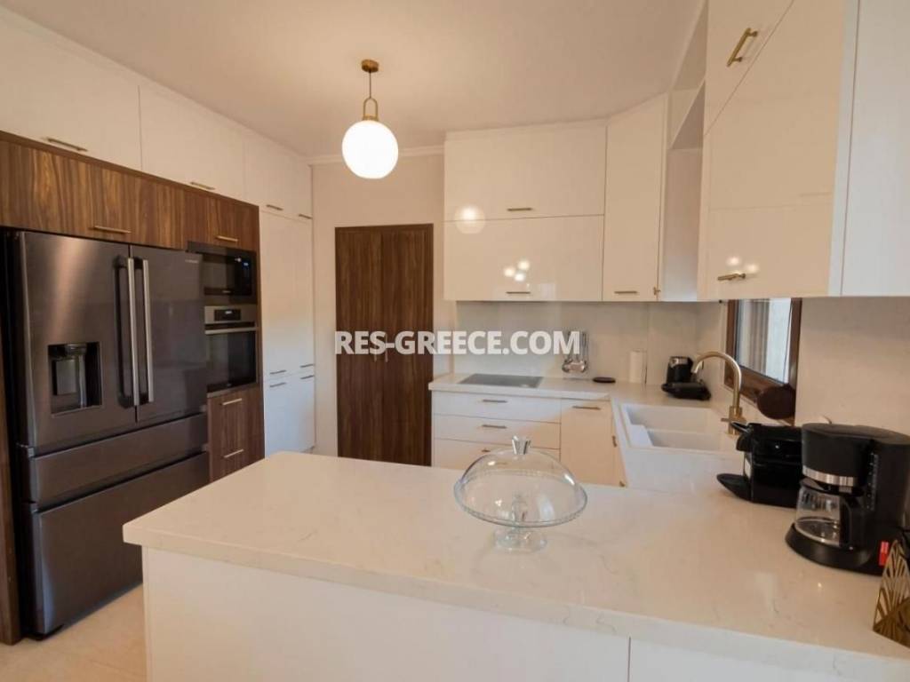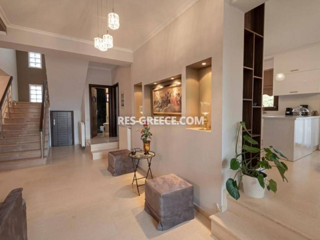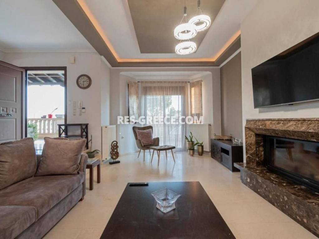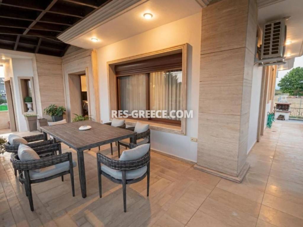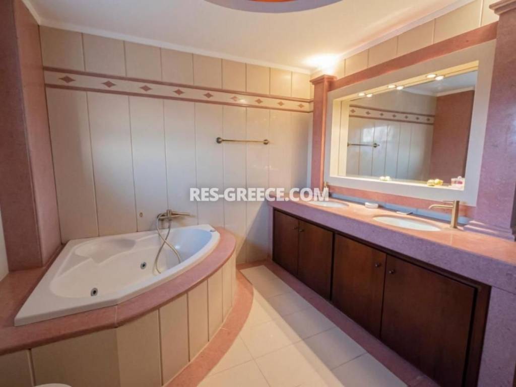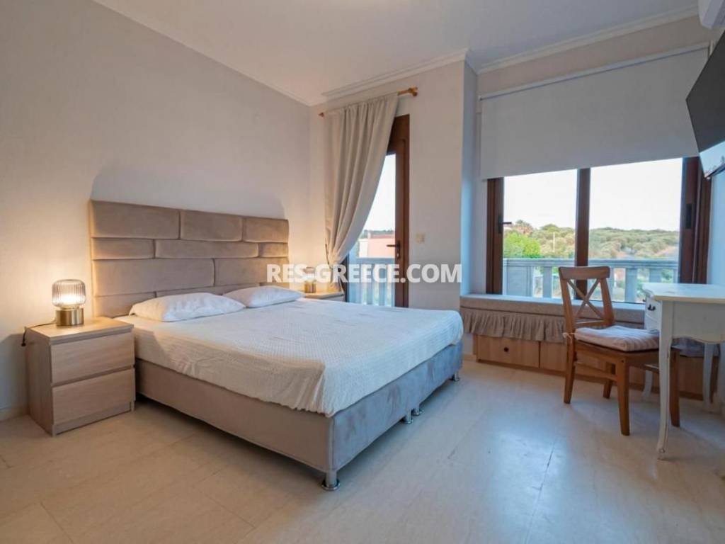 For sale there is the big family villa of 240m2 close to the town and the beach (500m) that can be used for both vacation and permanent living. on the Ground level (of 140m2) there are 2 living rooms, a fireplace, a sitting room and a kitchen, a guest’s room plus a shower and a small store room under the stairs. On the first level (of 100m2) there are 2 rooms, a master bedroom with private cloak room and shower and also we have a big bathroom with hydro massage and 2 sinks. The first level is “facing” to a huge covered veranda. High quality construction Including all the furniture, lighting and home appliances (like Aeg oven and Samsung refrigerator). 3 wardrobes totally in the bedrooms Individual heating system (boiler and batteries) 2 air conditions (18.000 & 12.000 Btu) Alarm system Satellite antenna Dressed with marble and granite (totally almost 600m2) 60m2 underground boiler/storage room. Sunset view Infrastructure nearby 30min from the airport Garden possibility to build small pool Construction ended at the end of 2005