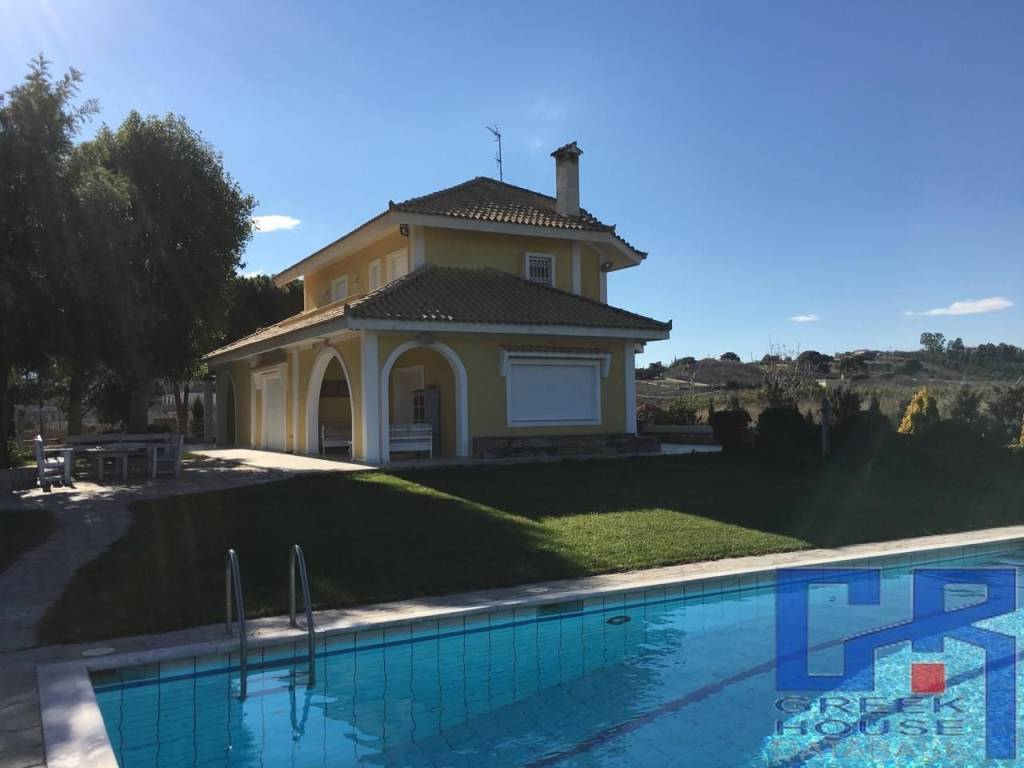 Detached house For sale, floor: Ground floor, in Markopoulo. The Detached house is 450 sq.m. and it is located on a plot of 4.000 sq.m.. It consists of: 5 bedrooms, 3 bathrooms, 2 wc, 2 kitchens, 2 living rooms and it also has 2 parkings (2 Closed). The property was built in 1990 and it was renovated in 2022. Its heating is Personal with Oil, it has Alluminum frames with Double glazed windows, the energy certificate is: C and its floors are Wooden, Marble. The property's status is: Excellent condition, it is close to Transportation, Museum, it has Nature, Openness, Panoramic view and it has East meridian orientation. The Detached house is With Facade, Bright, Airy, Sunny, Storage, Attic, Internal staircase, Swimming pool, Garden, Security door, CCTV, Security alarm, BBQ, Automatic watering, Grass, Trees, Pets allowed, Quiet neighborhood, Service/Maid’s room. Price: €890.000. GREEK HOUSE DB, contact phone: 6984083357, 2121072695, email: greekhousedb1@gmail.com, website: