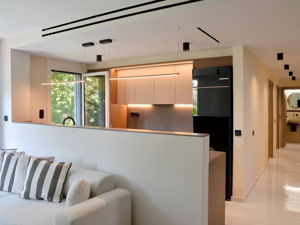Luxury Fully Renovated Apartment for Rent in Vouliagmeni – 80sqmExperience modern elegance and unparalleled comfort in this meticulously renovated 1st-floor apartment, complete with 1 open parking space. Spanning 80sqm, the property combines sophisticated design, high-end finishes, and functional luxury. Interior Features: • Open-plan kitchen: Fully equipped with high-quality appliances including oven, microwave, and fridge. All kitchen furniture is custom-made and imported directly from Italy. Side balcony access enhances natural light and ventilation. • Living room: Features customized wall units, a stylish TV stand, and a small integrated workstation with a built-in library. • Lighting & Smart Home: Architectural LED lighting throughout, full smart home installation, central cooling and heating via split units, and a modern alarm system. • Bathroom: Contemporary design with porcelain fixtures and a glass shower. • Laundry & Storage: Internal laundry and linen/cleaning area designed for convenience.Outdoor Features: • Large balcony with panoramic views of lush greenery. Elegant wooden teak flooring and Italian-designed, electric, customized awnings create a perfect outdoor retreat. Design & Style:Every detail of this apartment has been thoughtfully curated with modern aesthetics in mind. Customized furniture and fittings imported from Italy ensure a unique, luxurious living experience. Light, airy, and spacious, the apartment exudes sophistication while maintaining practical comfort. 6947975220