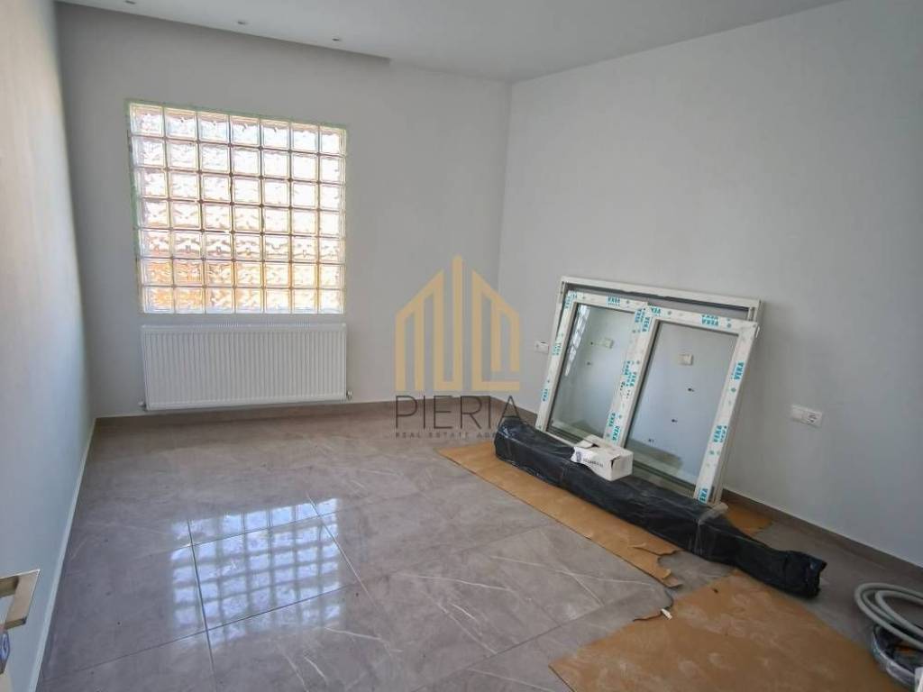 Katerini, Katafygiotika: For rent Newly built luxury apartment 110 sq.m. , frontage on the 1st floor with individual natural gas heating in a 1-story building. It consists of 2 bedrooms, 1 of which is a master, 1 kitchen-living room, Garden, storage, and 1 bathroom/WC. It was built in 2025, painted and has a mountain view, synthetic frames, security door, energy class A+, tiled floors, awnings, screens, alarm, solar water heater. It is ideal for students or families or workers without monthly utilities. Free & private parking. Very quiet neighborhood and magnificent view. It is worth seeing up close. Note, the photos will be updated as soon as the stairs and the bathroom are finished. There are hidden lights that cannot be seen at the moment and in general a very nice job has been done on the interior lighting. Price €540 | Property Code: #1092