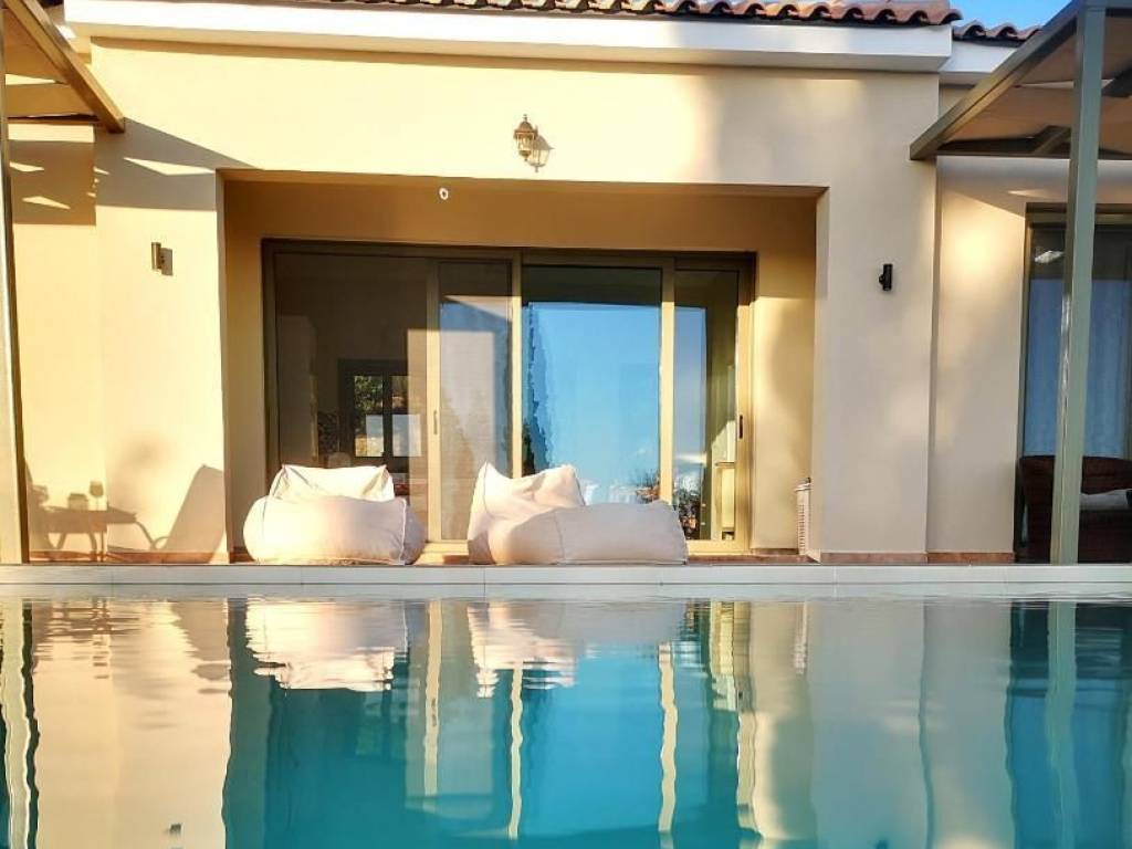 Beautiful Sea View Villa for Sale Kefalonia – Leivatho 75 sq.m. | Plot: 3,695 sq.m. | Built 2022 An exceptional, fully furnished villa of 75 sq.m., built in 2022, located in the highly desirable area of Leivatho, overlooking the idyllic bay of Lourdas in southwestern Kefalonia. Designed with a refined balance of traditional character and modern elegance, this property offers absolute privacy, outstanding sea views, and significant investment potential. Property Layout Interior area: 75 sq.m. Bedrooms: 2 Bathrooms: 2 Open-plan kitchen & living area Large verandas with panoramic Ionian Sea & sunset views The interior layout is simple, functional, and bright, with all living areas oriented to maximize the breathtaking views of the sea and the surrounding natural landscape. Outdoor Spaces Large private swimming pool Landscaped garden integrated with natural materials Spacious terraces ideal for relaxation and outdoor dining Open parking space The outdoor areas are thoughtfully designed to blend seamlessly with the environment, offering tranquility and complete privacy on a generous plot of 3,695 sq.m. Investment Opportunity – Building Permit A key advantage of this property is the active building permit for the construction of a second two-storey residence with a swimming pool on the same plot. This makes the villa an excellent investment opportunity, whether for expansion, dual residences, or enhanced rental income. Features & Amenities Energy Class A Air conditioning (heating & cooling) Solar water heater Aluminum window frames with double glazing & insect screens Security door Tiled floors Fully equipped with electrical appliances Satellite dish Ceramic roof Night-rate electricity Location & Distances Sea: 2.1 km Nearest village: 400 m Argostoli (capital): 10 km Airport: 11 km Easy access to the popular beaches of Lourdas, Trapezaki, and Kanali The villa enjoys a privileged elevated position, offering uninterrupted views while remaining close to beaches, villages, and essential infrastructure. Summary This villa is an ideal choice for high-end tourist exploitation, a holiday retreat, or a permanent residence. Combining luxury, privacy, panoramic views, and future development potential, it represents a rare opportunity in one of Kefalonia’s most sought-after locations. A refined Ionian sanctuary with strong investment credentials. Please contact us via WhatsApp message, or fill out the contact form here.