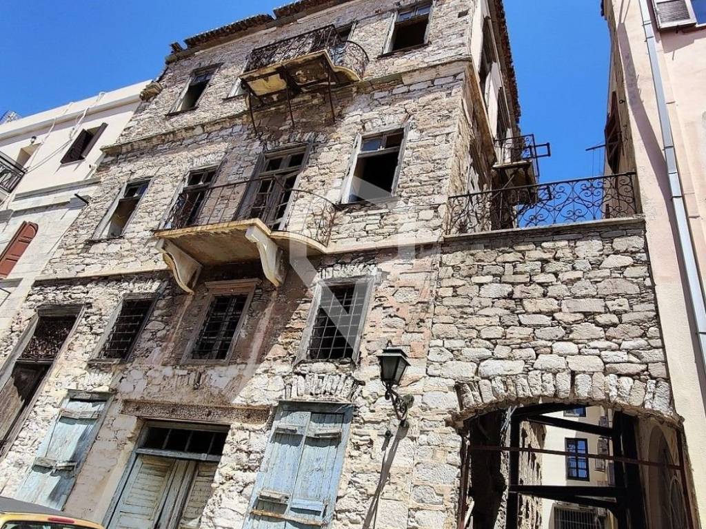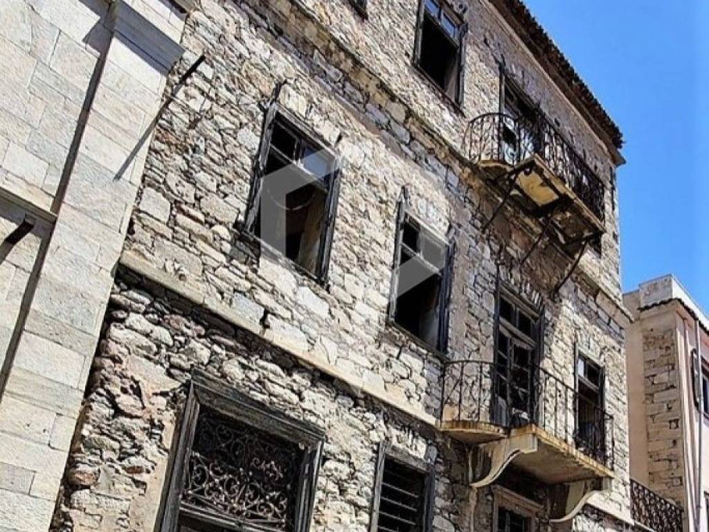 For sale is one of the neoclassical, listed jewels of Ermoupolis, distinguished for its unique aesthetic and architectural value. The property extends over three levels of 203 sq.m. each, on a plot of 259 sq.m. A section of the building, currently roofless due to partial demolition, occupies 128.29 sq.m. of the plot, while the existing tiled-roof structure covers 74.85 sq.m. per floor.