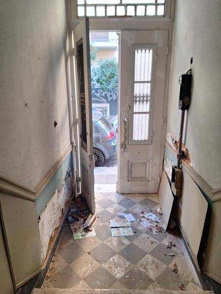 Kypseli - Building 450sqm levels 3, semi-basement (150sqm) - ground floor (150sqm) - 1st (150sqm), needs renovation, year built 1936, energy class F, quiet, exposure, luminous, facade, garden, private terrace, wooden frames, wood & mosaic floors, internal stairs, close to square (up to 100m), close to metro/train (up to 500m), close to market (up to 100m), close to entertainment (up to 100m).