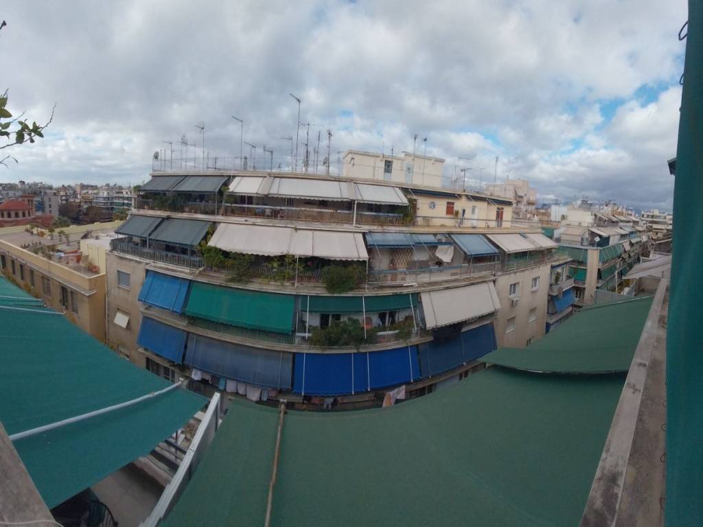 Bright through-apartment with panoramic views, located just 300 m (4-minute walk) from Agios Nikolaos ISAP metro station and 550 m (7-minute walk) from Patision Avenue. The apartment features 2 bedrooms, both with built-in wardrobes and balconies. The living room and kitchen open onto a front-facing 20 sq.m. terrace offering excellent view. Awnings are installed on all balconies. Top-floor penthouse (5th floor), with only two apartments on the floor. Excellent layout, quiet street, and a well-maintained apartment building. Please note: no real estate agents or agencies.