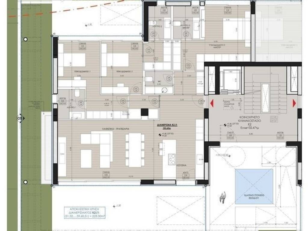 Kifissia, Kato kifissia, Apartment For Sale, 150 sq.m., Property Status: Under Construction, Floor: Ground floor, 1 Level(s), 3 Bedrooms (3 Master), 1 Kitchen(s), 3 Bathroom(s), 1 WC, Heating: Autonomous - Heat Pump, View: Good, Building Year: 2025, Energy Certificate: A+, 1 parking(s), Type of door frames: Aluminum, Features: Elevator, Security door, Security alarm, CCTV, Storage room, Fireplace, Photovolatic Panels, Double Glazed Windows, Window Screens, Luxury, Airy, Roadside, Bright, On Corner, Underfloor, AirConditioning, Solar water system, Boiler, Grass, Swimming pool, Back yard (Garden), New Construction, Price: 1.200.000€. KM Properties, Tel: 6981009333, email: katerina.miltsakaki@gmail.com