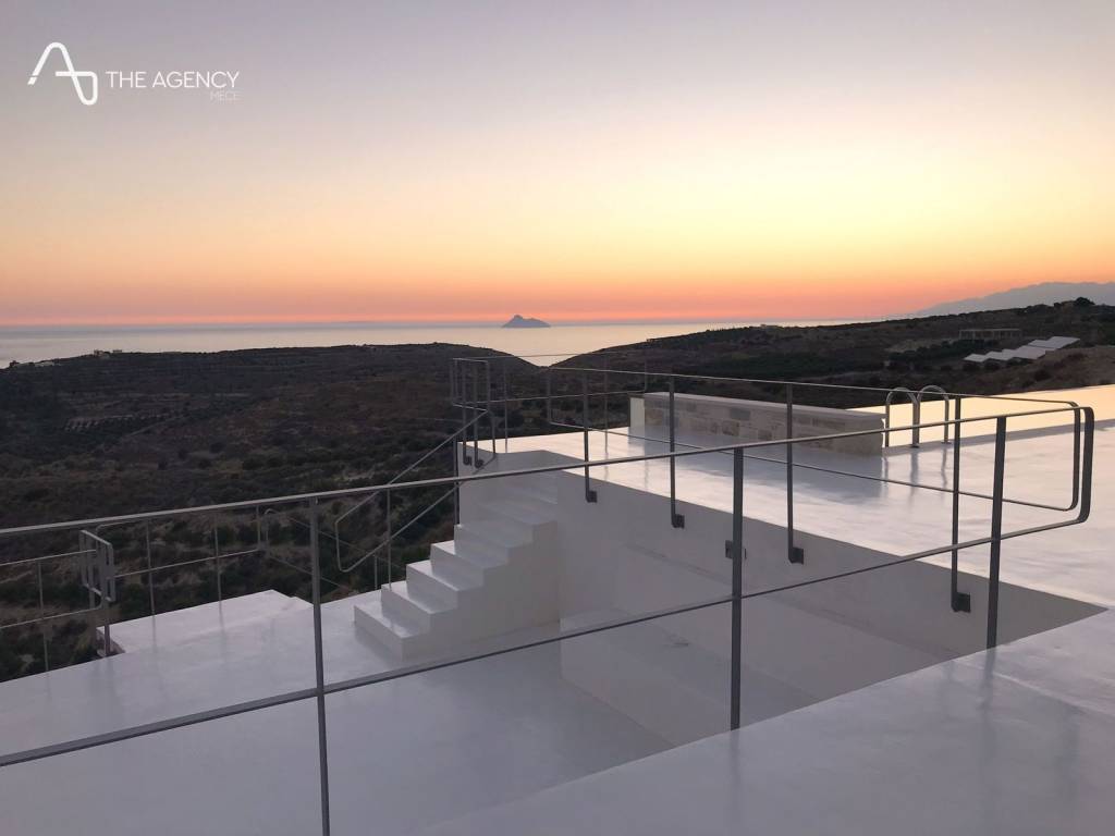 This exceptional modern villa, built in 2019, is set on a 4,000 m² plot with olive trees, located on a small hill offering unobstructed panoramic views of Crete’s southern coastline. Enjoy magical sunsets over the sea, the fertile Messara plain, and the Psiloritis mountain range. Property Details: Main house: 213 m² Basement: 153 m² Plot: 4,000 m² with approximately 53 olive trees The villa features a bright and spacious living room with a wood-burning stove and breathtaking views. The fully equipped Italian kitchen includes top-of-the-line Gaggenau and Miele appliances. The master bedroom has a luxurious en-suite bathroom with Philippe Starck-designed shower, bathtub, and taps. Two additional bedrooms share a bathroom also fitted with Philippe Starck fixtures. Basement Area: Laundry room with high-end Miele washing machine and dryer Gym room Large garage with automatic Hörmann garage door Outdoor Spaces: Spacious 250 m² terrace 42 m² infinity swimming pool Olive grove with mature olive trees Sustainability and Comfort: Designed with full respect for the environment and comfort, the villa includes: Geothermal system with heat pump Photovoltaic panels Underfloor heating and cooling Fan coils for temperature control 24/7 automatic ventilation system Central water filtration system for fresh drinking water Biological wastewater treatment system Backup generator for power outages Energy Certificate: A (highest category) Contact: Pitsouli Paraskevi +30 6939 400410 theagencymece@outlook.com www.theagencymece.gr THE AGENCY MECE – Your luxury lifestyle begins here!