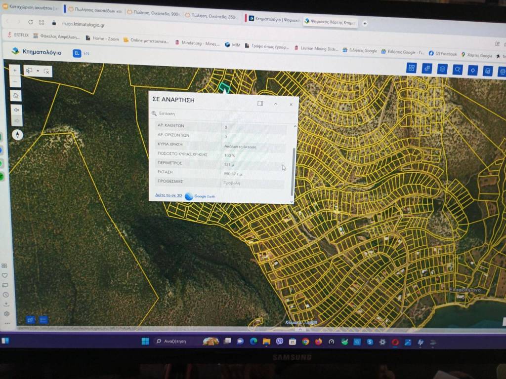 Το οικόπεδο βρίσκεται σε προνομιακή θέση με ανεμπόδιστη θέα προς τη θάλασσα και το βουνό και απέχει απο τη θάλασσα 1.400 μετρα. Υπάρχει η δυνατότητα να πωληθεί μαζί με το διπλανό του οικόπεδο εκτάσεως 911,72 τ.μ.