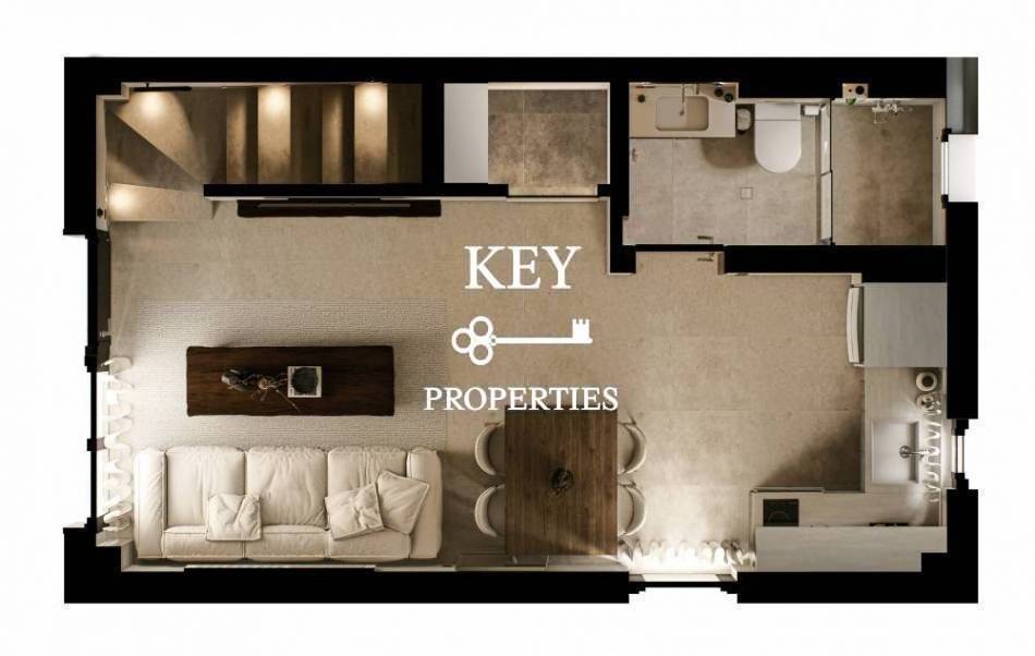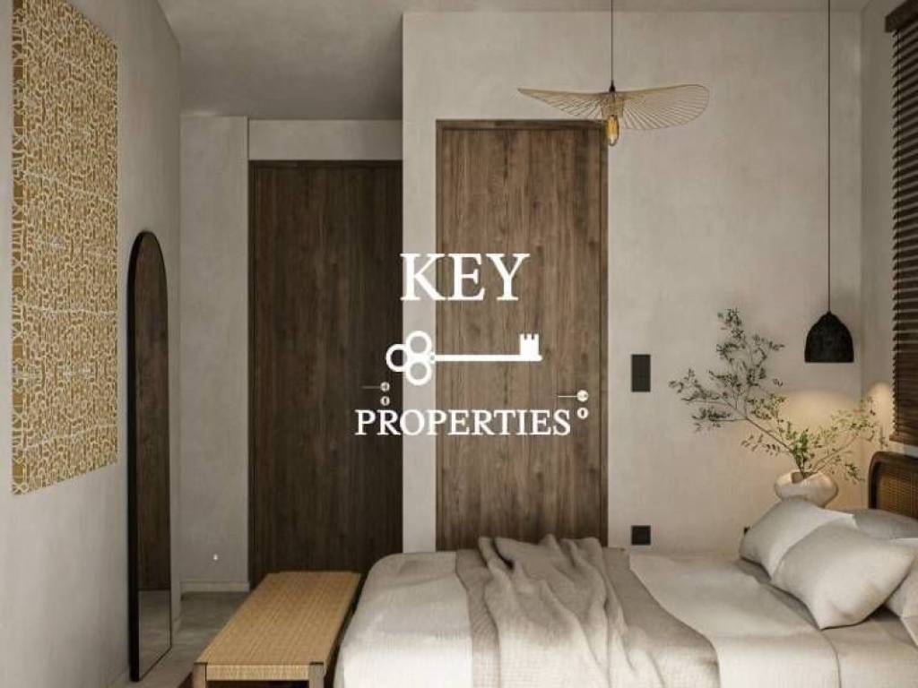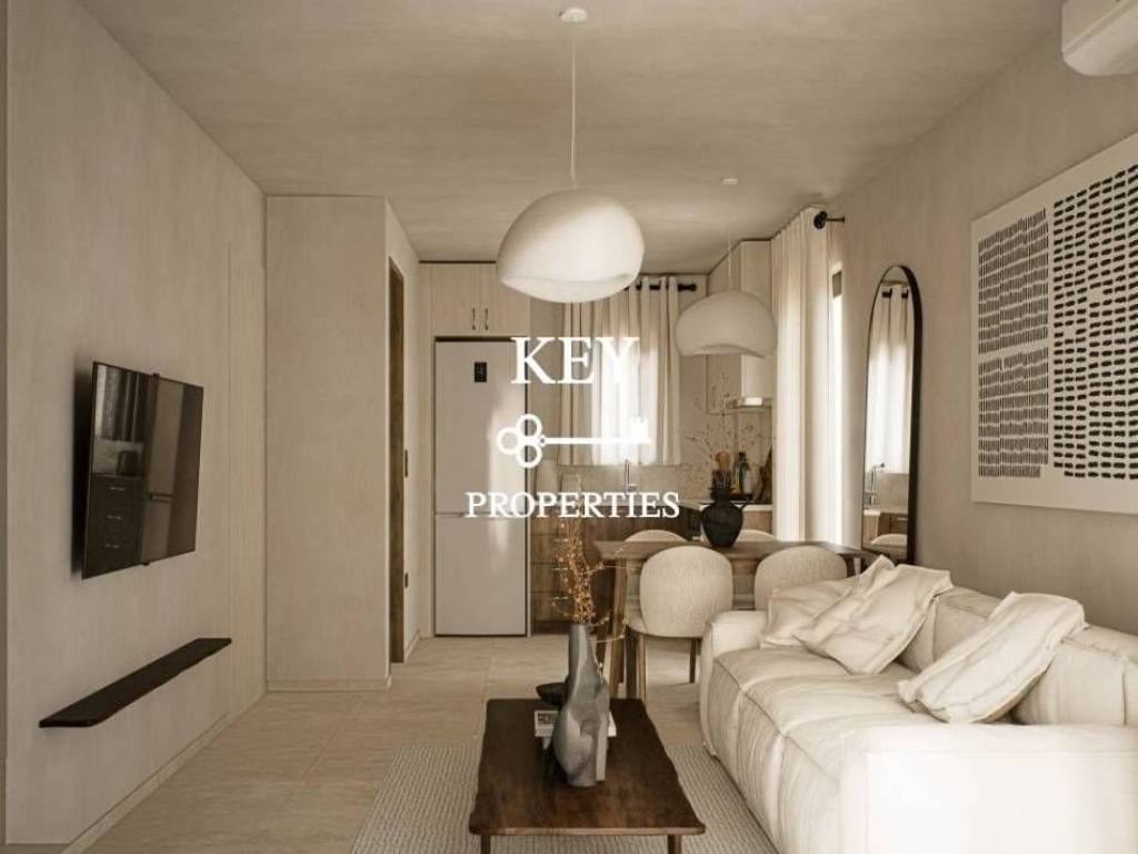 Luxurious newly built maisonette of 56sq.m. with garden, for sale 150 m. from the beach. It is developed on two levels and consists of a bright living room with kitchen opening onto a terrace, two spacious bedrooms and two bathrooms. It is fully furnished, has electrical appliances, solar water heater, air conditioning, armored door and double-glazed aluminum frames. It is situated in an ideal location close to the beach, beach bars, and supermarket.