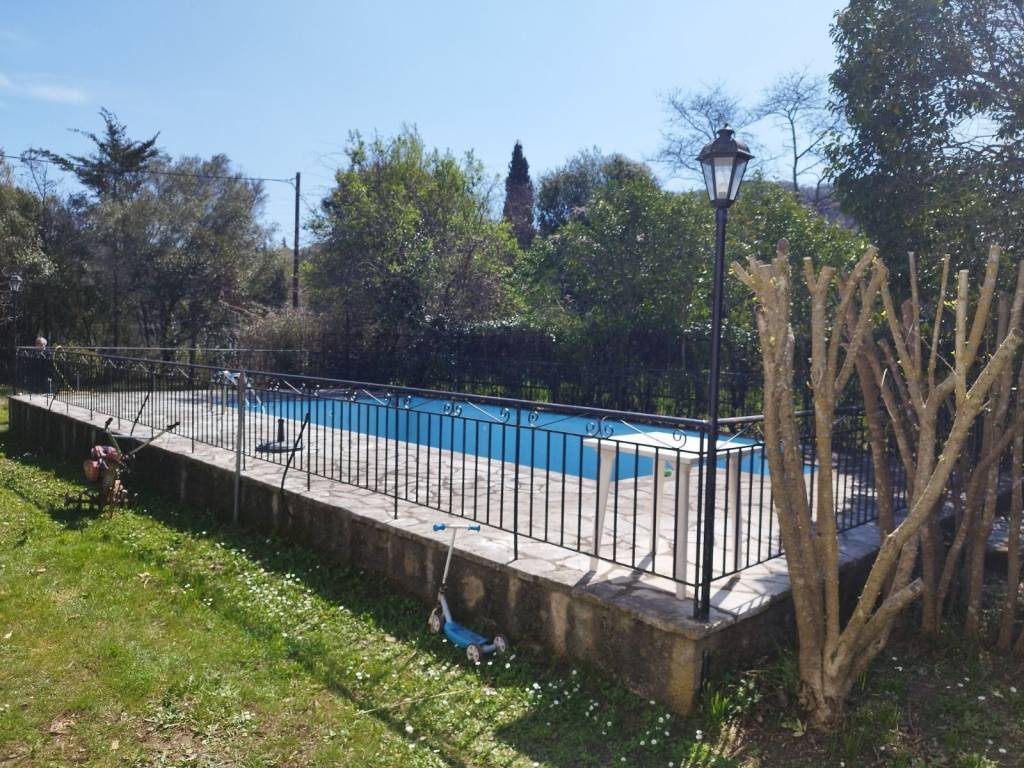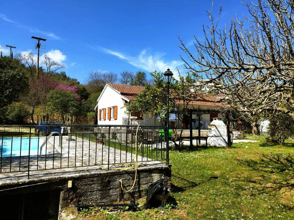 Detached house of 85 sq.m. for sale in northern Corfu, with terraces, swimming pool, garden and 3.5 acres of land surrounding the house (Located 1 kilometer before Kassiopi)