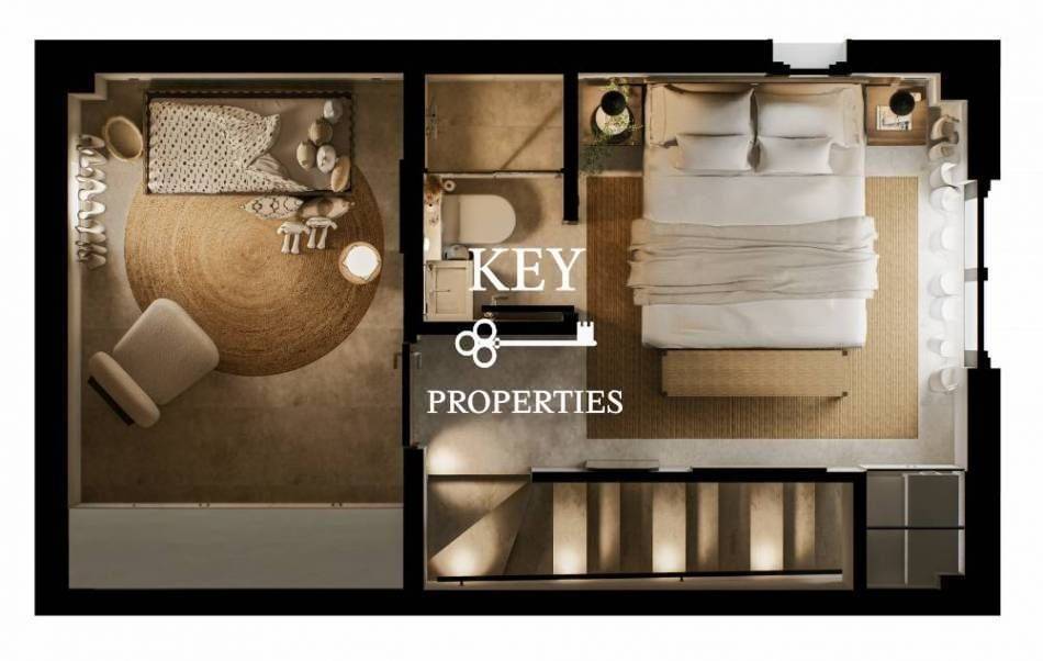Luxurious newly built maisonette of 56sq.m. with garden, for sale 150 m. from the beach. It is developed on two levels and consists of a bright living room with kitchen opening onto a terrace, two spacious bedrooms and two bathrooms. It is fully furnished, has electrical appliances, solar water heater, air conditioning, armored door and double-glazed aluminum frames. It is situated in an ideal location close to the beach, beach bars, and supermarket.